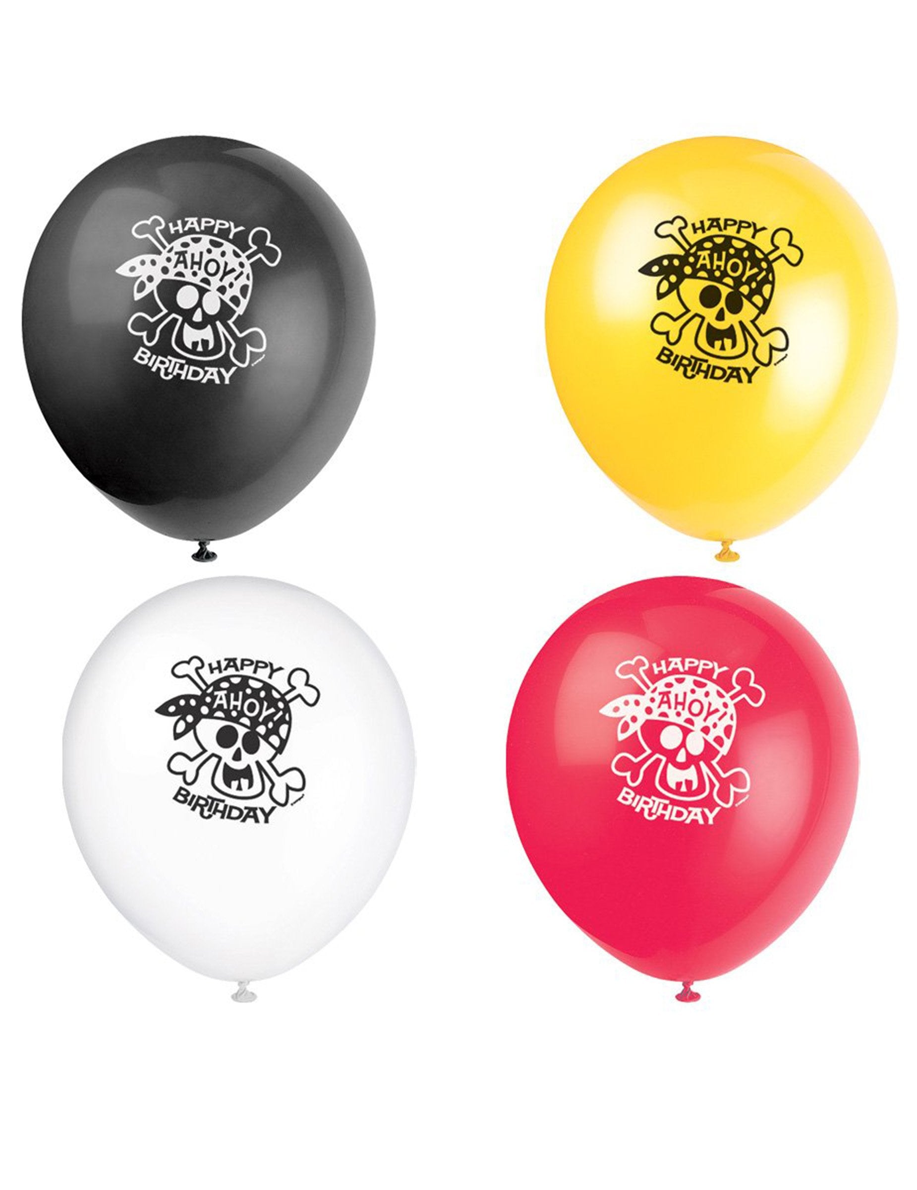 Acest set conține 8 baloane de petrecere cu tematică de pirați cu un diametru de aproximativ 30 cm. Setul include 2 baloane negre, 2 galbene, 2 roșii și 2 albe pentru a crea o decorare variată. Aceste accesorii sunt ideale pentru a înfrumuseța o petrecere aniversară pentru copii sau orice alt eveniment festiv tematic.