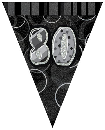 Ghirlandă cu stegulețe gri, vârstă 80 de ani, 3,6 m