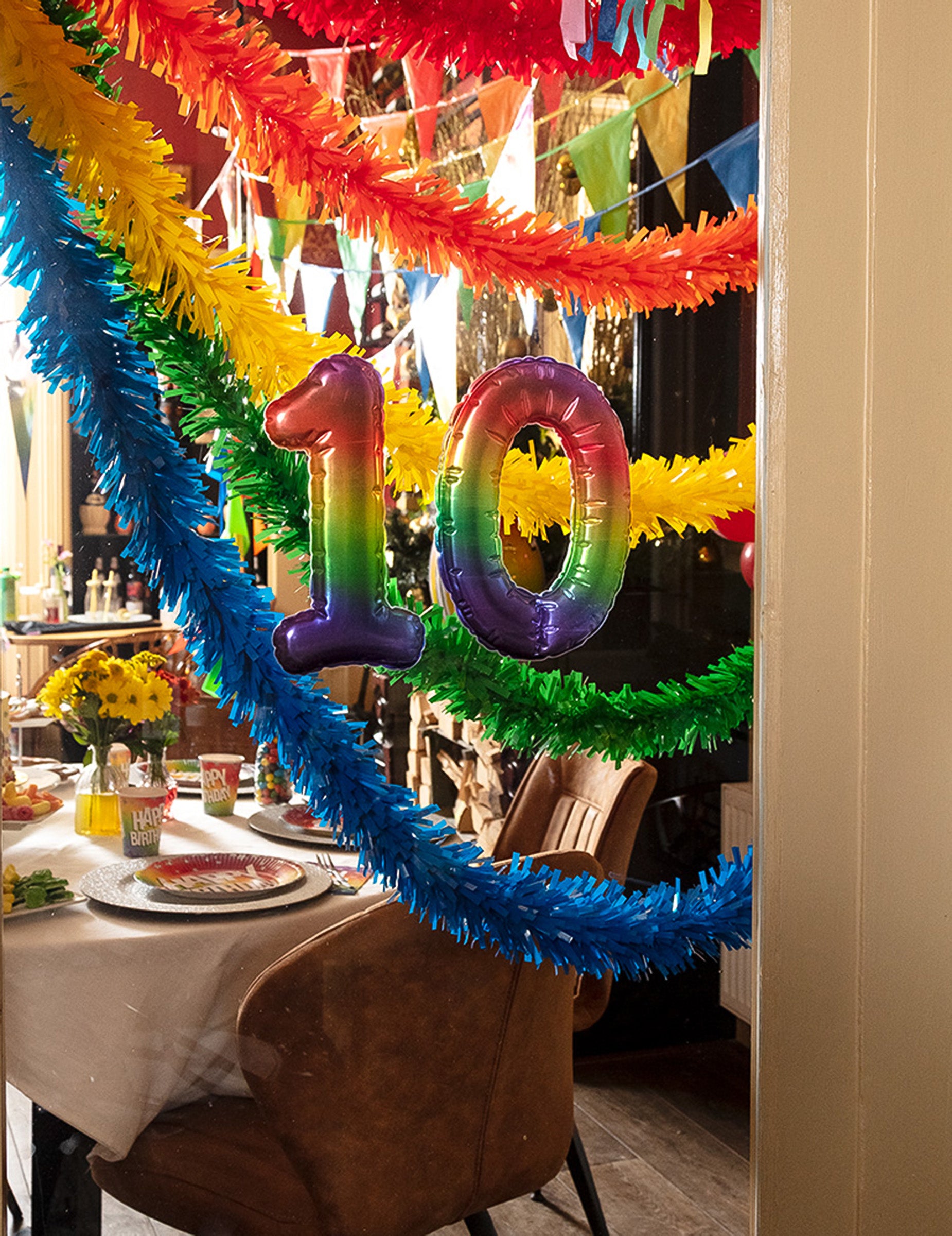 Această ghirlandă din PVC este de culoare galbenă și măsoară aproximativ 10 metri lungime. Este tratată pentru a rezista la flăcări. Acest accesoriu va fi ideal pentru decorarea sălii sau a exteriorului la un eveniment cu costume sau tematic.