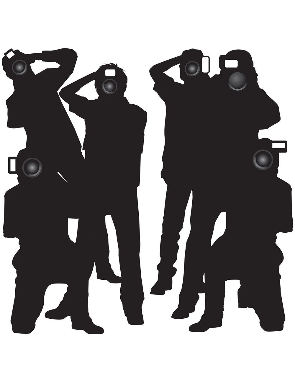 O mulțime de două decorațiuni de perete 1,7 m Înalt reprezentând paparazzi făcând fotografii. Această decorare va fi perfectă în timpul unei seri de la Hollywood, astfel încât oaspeții tăi să fie luați pentru vedete reale.