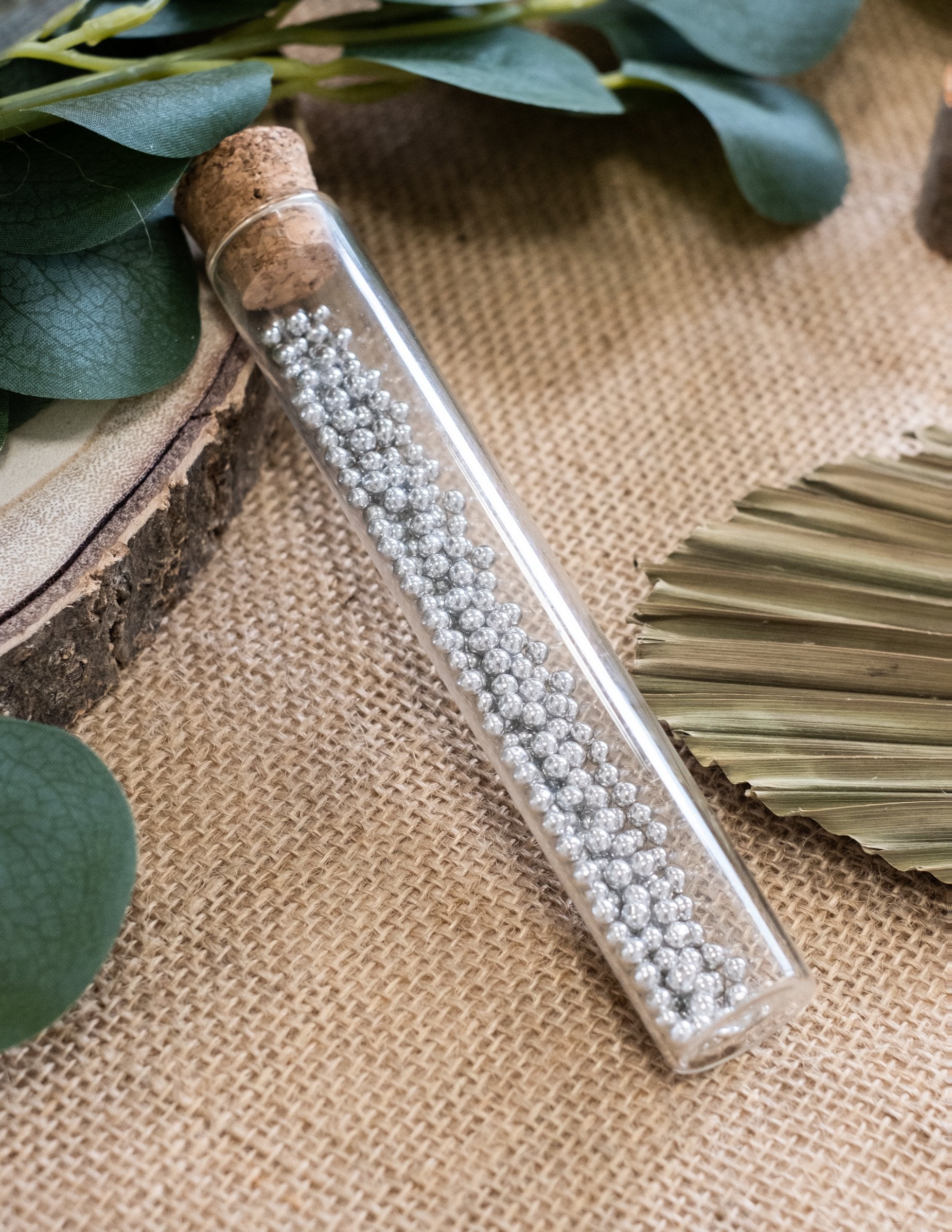 Acest eprubetă de aproximativ 15 cm lungime și 2 cm în diametru este confecționat din sticlă. Complet transparent, are un capac de plută. Va fi perfect pentru a conține migdalele tale sugate în timpul nunții, botezul sau recepția dușului pentru copii! Sticlă în conformitate cu standardele alimentare.