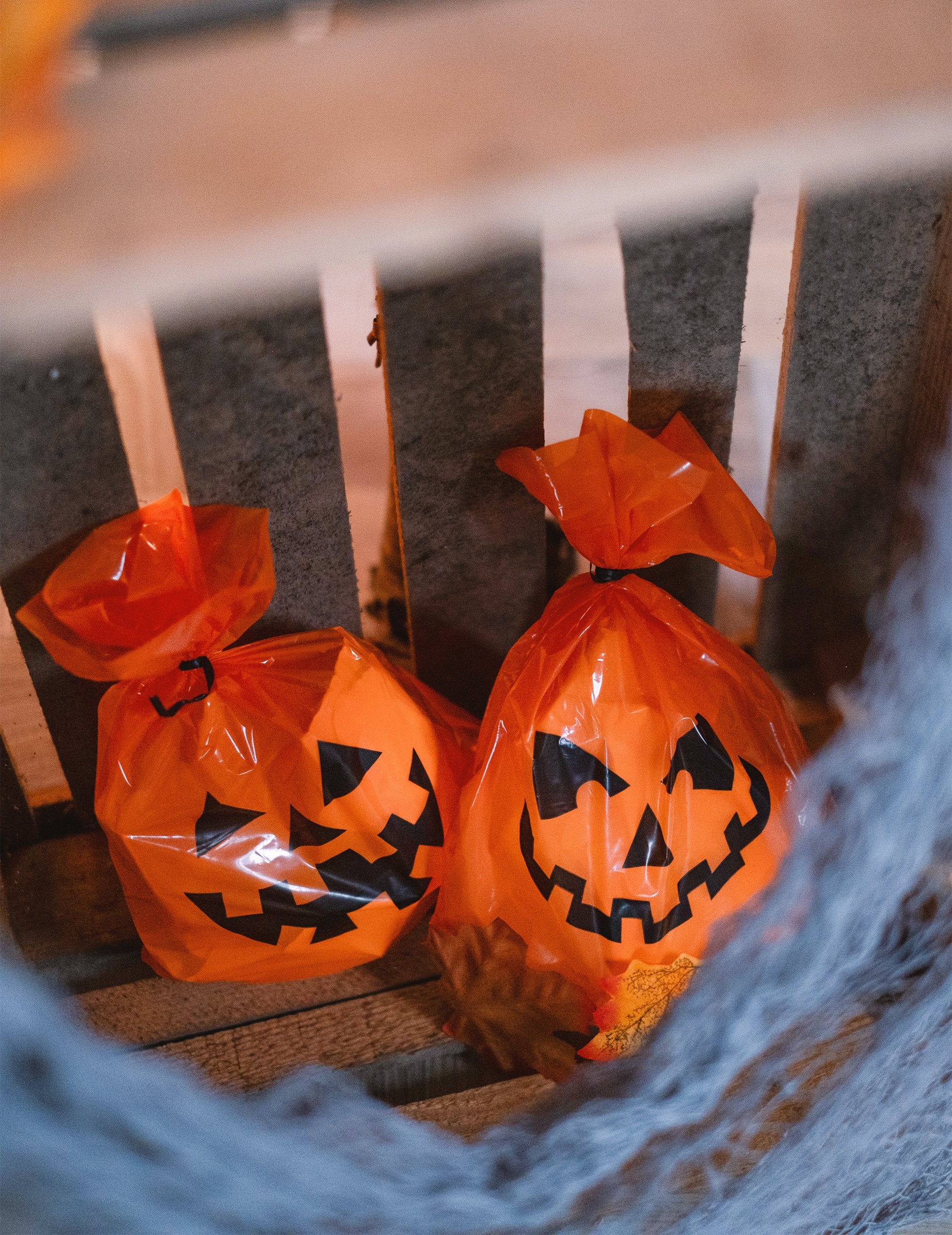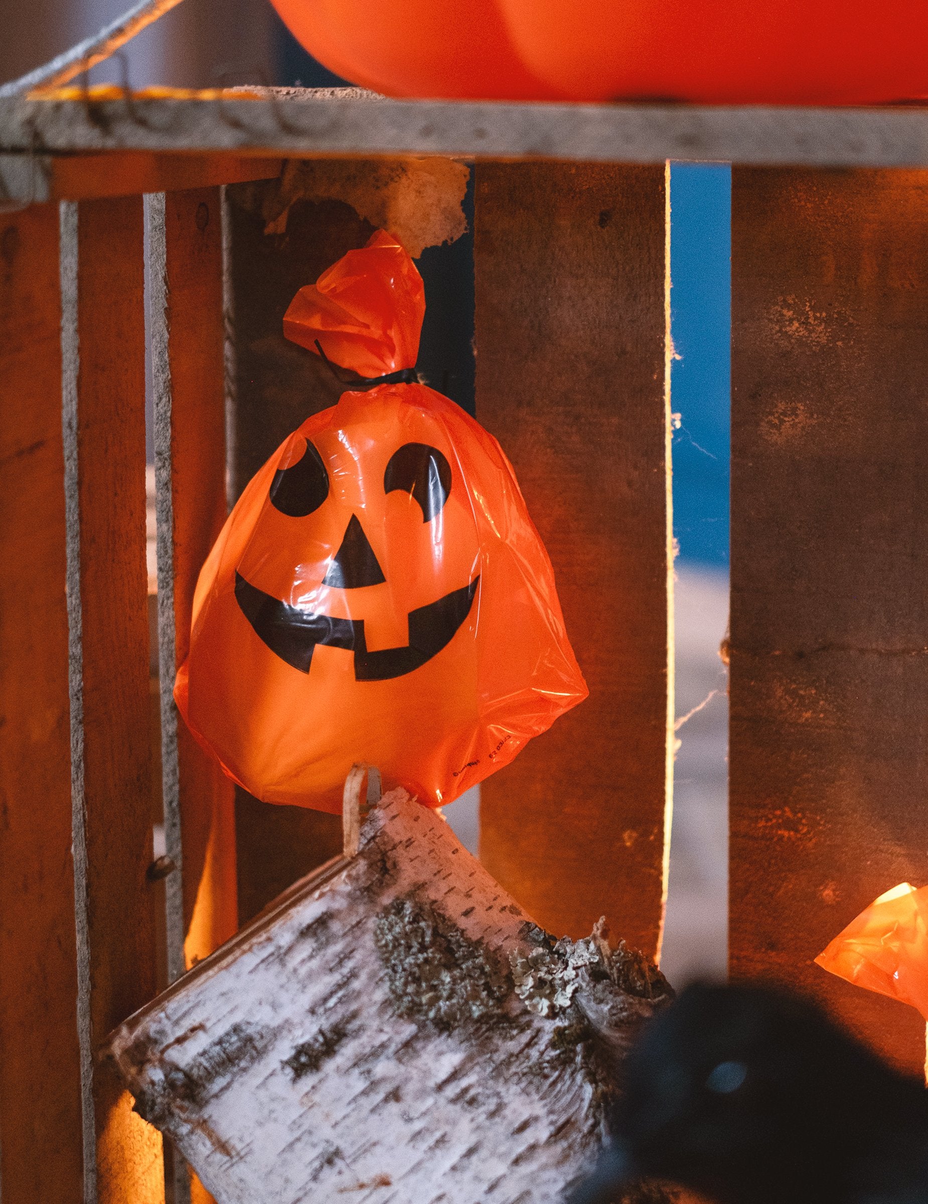 Acest pachet este format din 20 de pungi portocalii. Fiecare dintre ele este tipărit cu o față de dovleac. Toate au expresii diferite. Fiecare pungă măsoară 15 x 20 cm. De exemplu, trebuie să le umpleți doar cu frunze moarte sau hârtie și pentru a construi elementele de fixare negre furnizate. Agățați aceste dovleci în copacii din grădina dvs. sau pe arbuști, garduri sau un pridvor pentru un efect deosebit în ziua de Halloween. Petrecere unică de branding