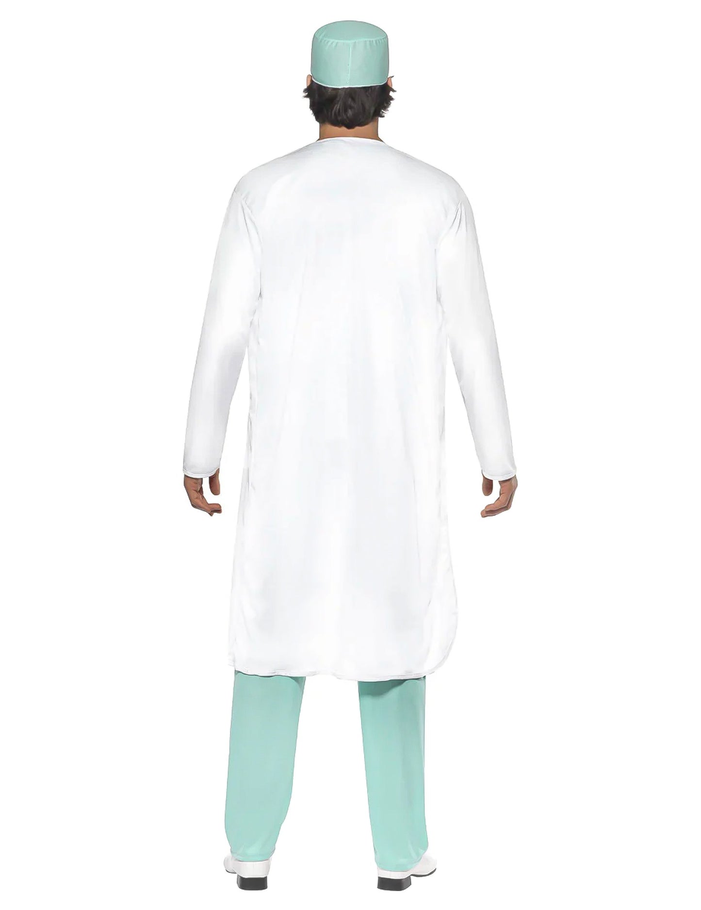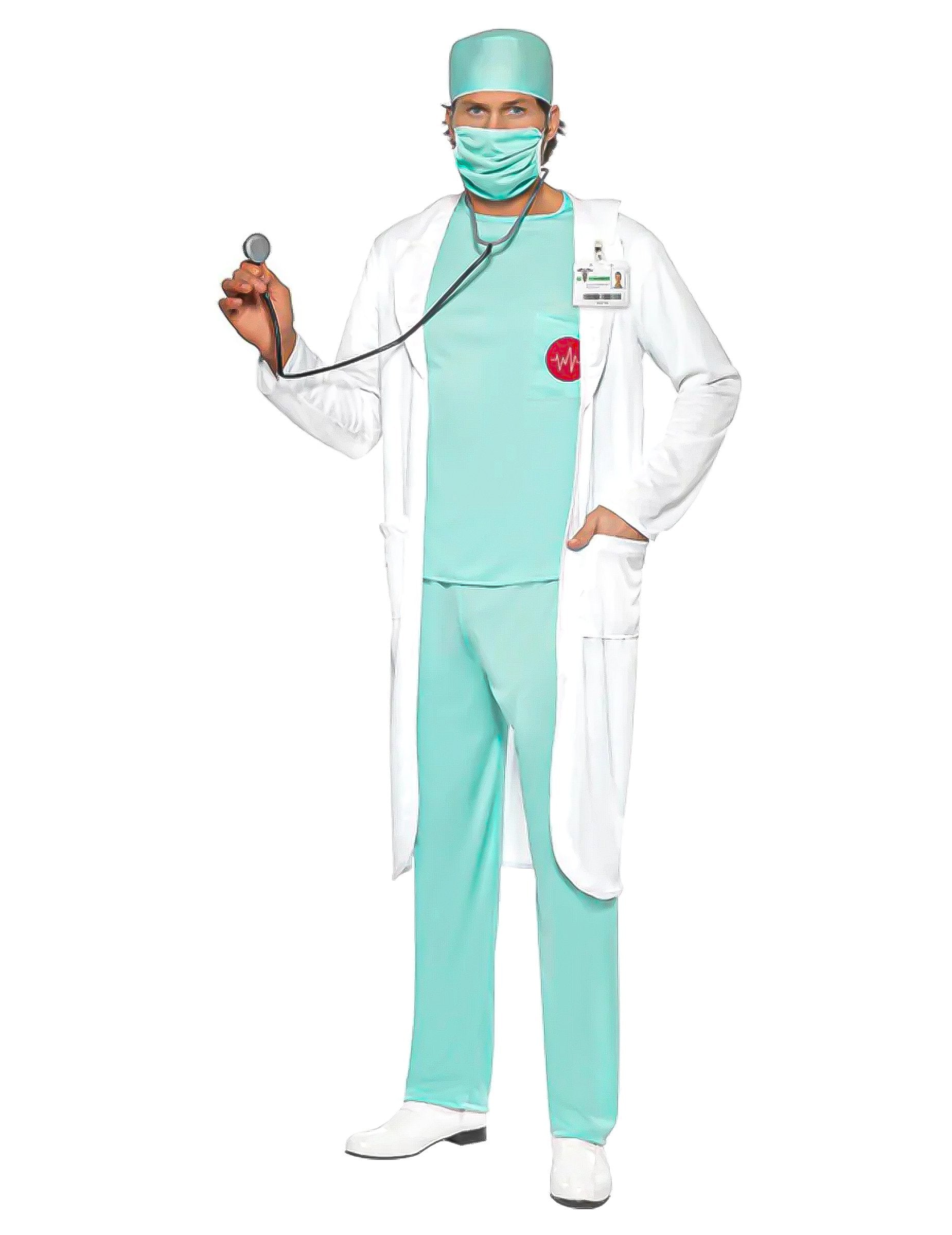 Deghizarea acestui medic pentru bărbați include o pălărie, o bluză, un înalt, pantaloni, mască și ecuson (stetoscop și încălțăminte nu sunt incluse). Partea de sus și pantalonii sunt verzi pal. O cruce roșie decorează partea stângă a vârfului. Masca și pălăria se potrivesc întregului. Verde pal, completează perfect costumul. O haină albă lungă și un ecuson aduc ultima atingere a întregului. Sunteți gata să vă tratați pacienții cu cea mai mare îngrijire.
