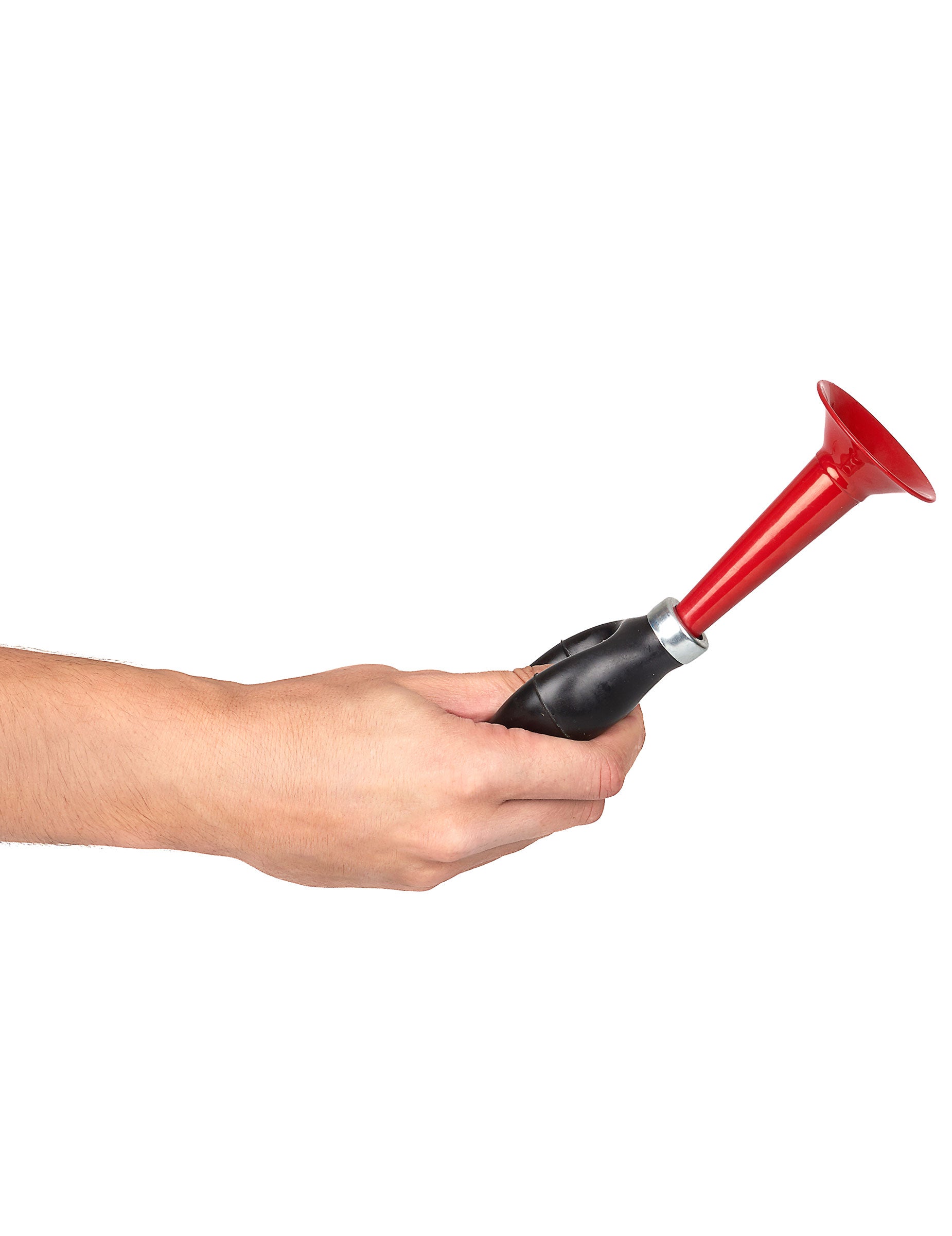 Acest corn roșu măsoară aproximativ 18 cm. Un șir roșu vă permite să -l purtați în jurul gâtului. Acest obiect va fi perfect pentru animarea serii sau pentru a pune starea de spirit într -un meci de fotbal, de exemplu.