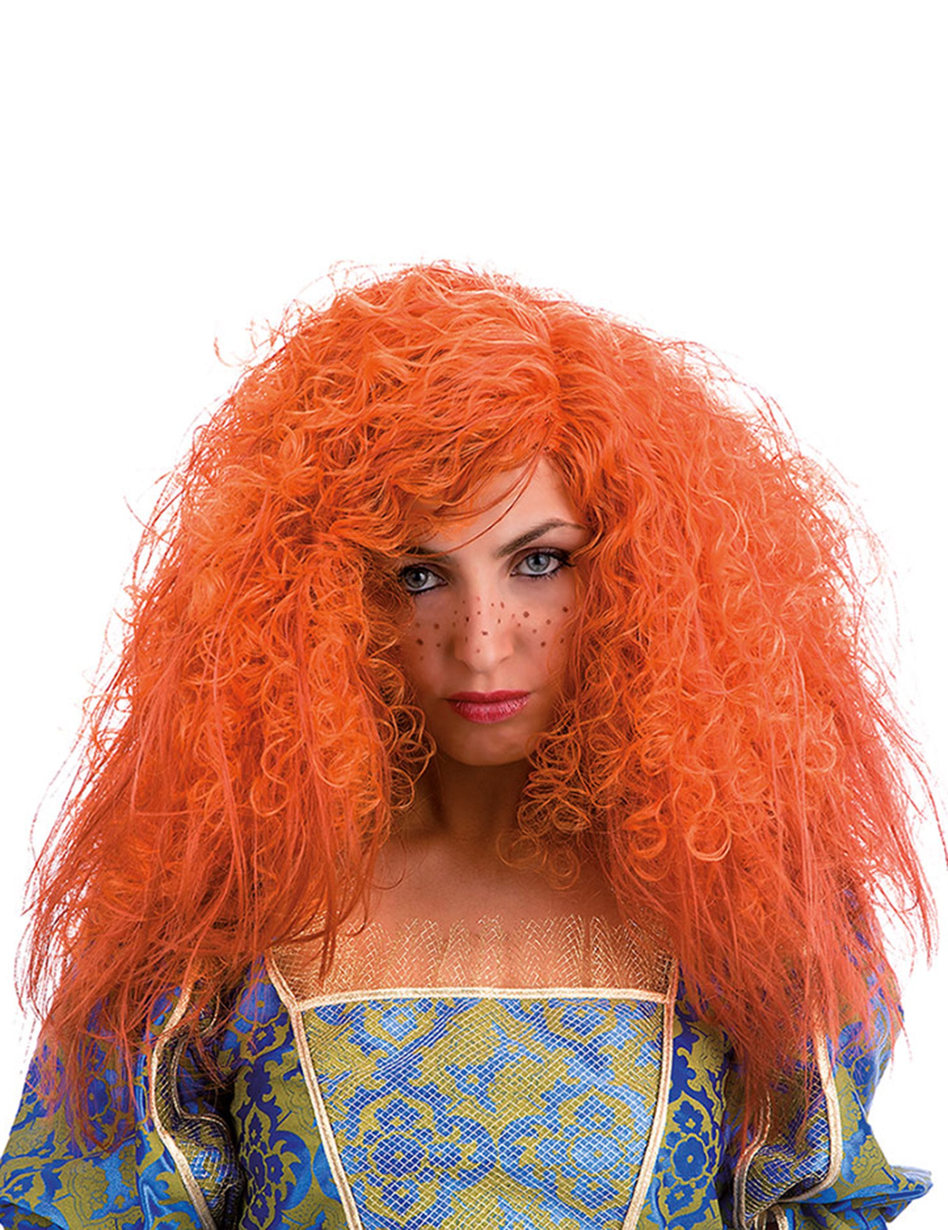 Această perucă pentru femei este de culoare portocalie. Prin urmare, părul este foarte ondulat dă un efect voluminos. Ea va completa un costum de prințesă în timpul carnavalului sau o seară deghizată.
