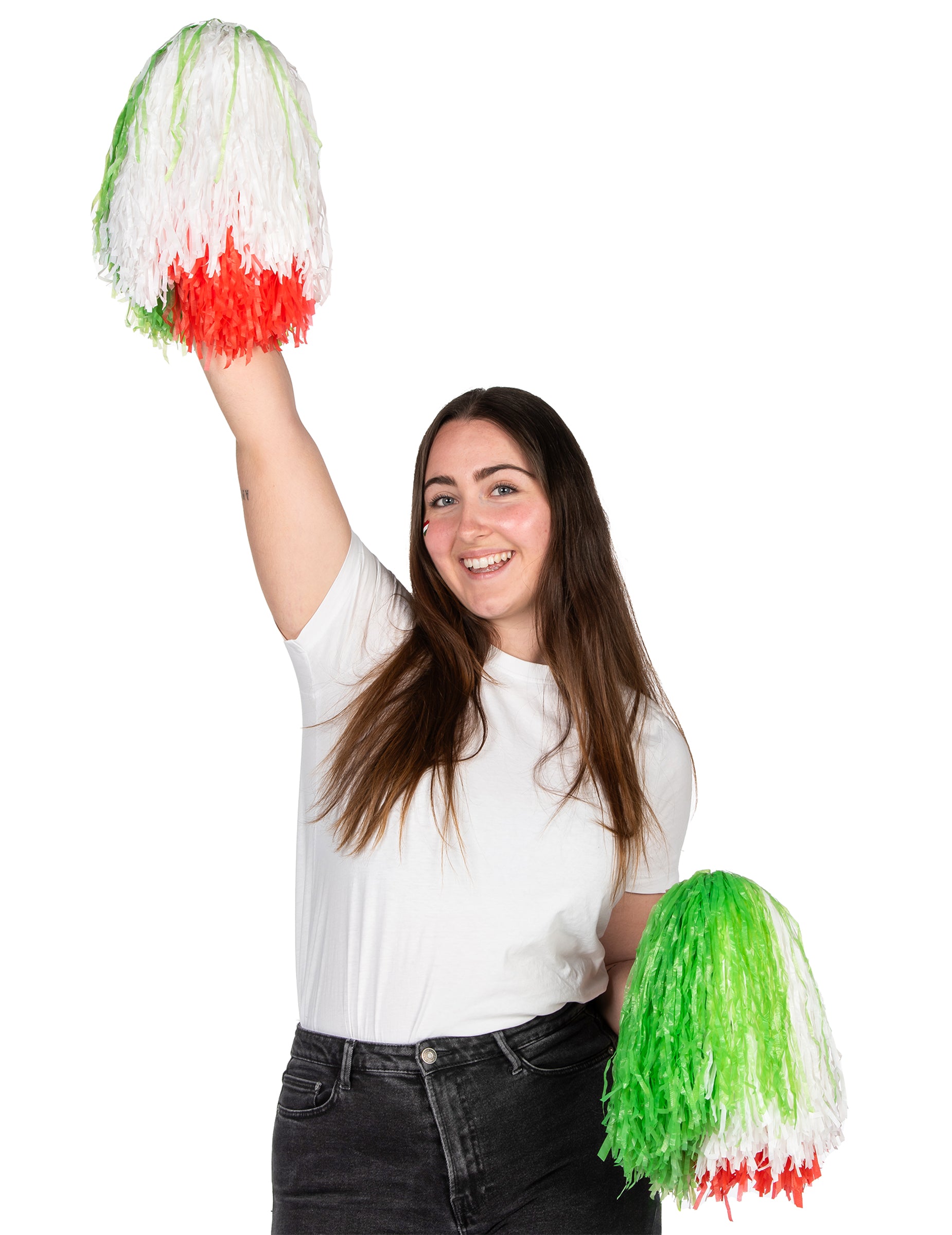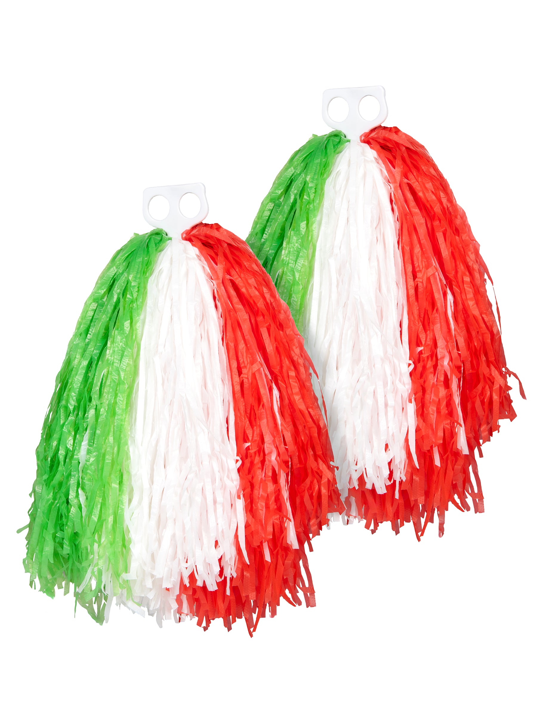 Acest pompom susținător este verde, alb și roșu. Firele pompom au o lungime de aproximativ 30 cm. Acest pompom se va lua cu ușurință folosind un mâner de plastic alb. În culorile Italiei, acest accesoriu va fi perfect pentru a finaliza o deghizare de către Pompom Girl și pentru a sprijini echipa ta de fotbal preferată. Copyright Widmann Srl