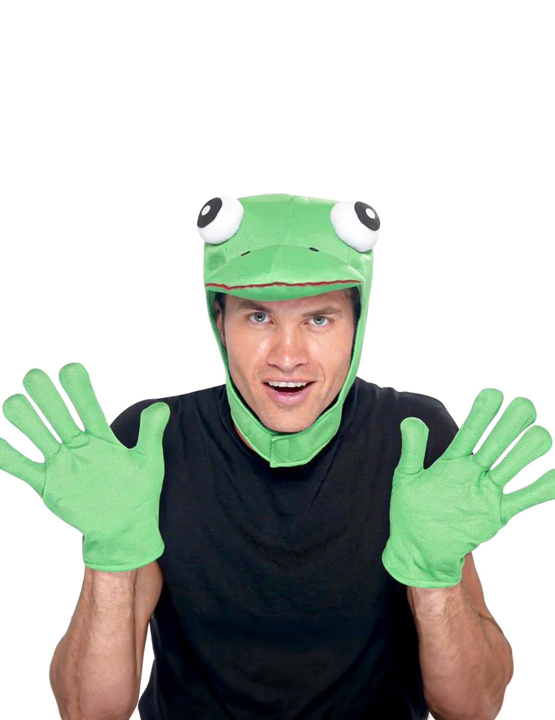 Acest kit de broaște pentru adulți este format dintr -o capac și o pereche de mănuși. Capacul verde reprezintă capul broaștei. Aceasta se închide sub bărbie folosind o zgârietură. Mănușile verzi potrivite reprezintă picioarele unei broaște, cu vârfurile degetelor mai largi. Acest set va fi perfect pentru a merge la căutarea sărutului care te va schimba ca prinț fermecător în timpul unei seri deghizate de prieteni.
