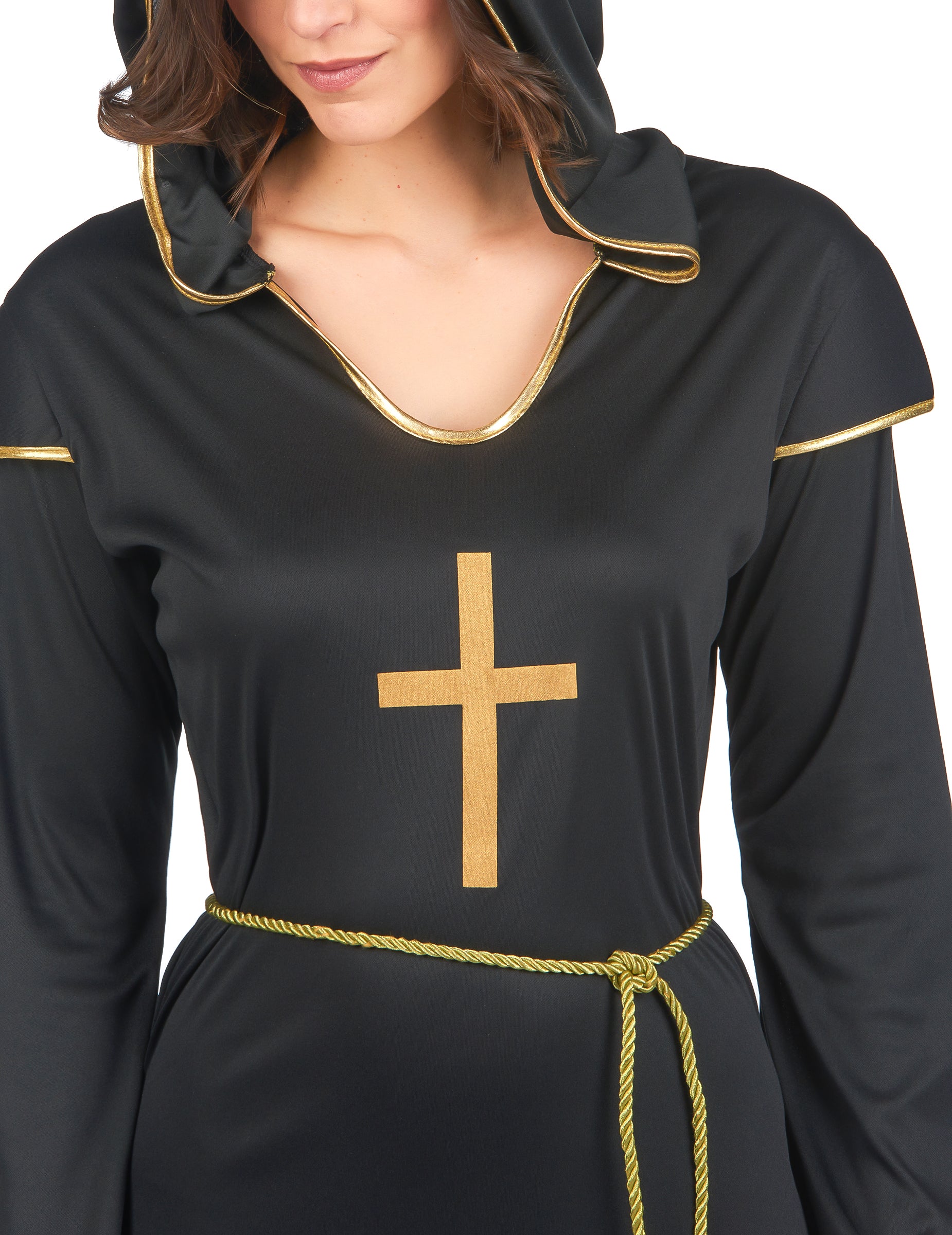 Acest costum pentru adulți este o ținută religioasă. Include o rochie și o centură (pantofi nu sunt incluși). Rochia neagră este mult mai feminină decât obiceiul tradițional. Un decolteu și un slot lung pe picior fac ca acest costum să fie sexy. O capotă și o cruce tipărită o completează. Magazinele dau un aer elegant acestei rochii lungi, cu un poliester fin. Finisajele sunt de culoare aurie. O centură de aur este legată ca o frânghie subțire. Fii atractiv, dar îndepărtat jucând o soră în timpul unei teme seara sau pentru carnaval.