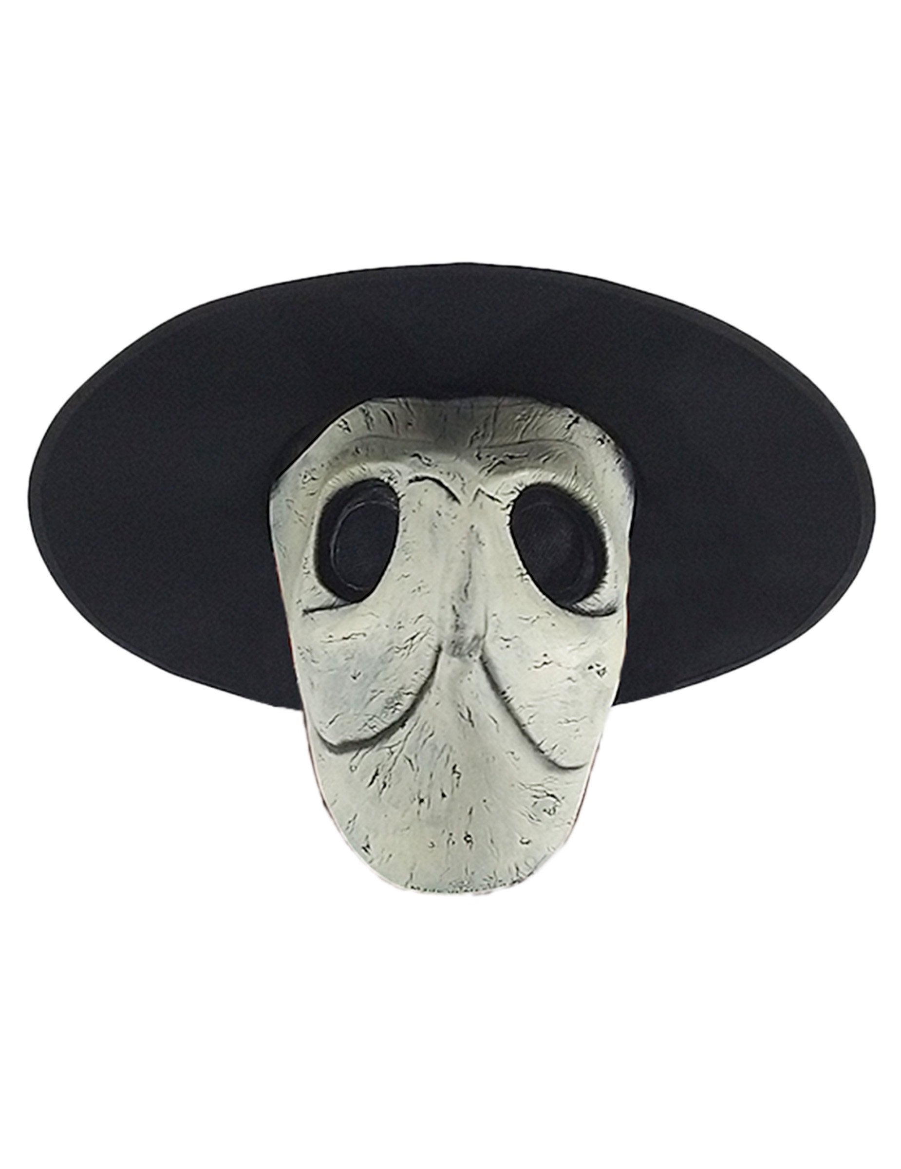 Această jumătate de m-a adult evocă protecția pe care medicii din vremea ciumei o aveau. În latexul alb cenușiu, este vopsit de mână. Ochii sunt materializați prin cercuri negre groase. O plasă neagră vă va permite să vedeți prin aceste deschideri fără să vă vedeți ochii. La nivelul nasului este prezentă o protuberanță în formă de cioc. Scopul acestei forme a fost de a ține mirosurile proaste. Această mască pe jumătate va fi menținută în față folosind un elastic. Pentru o temă sau o seară de Halloween, sperieți -vă prietenii purtând un degaj ca doctor cu ciumă.