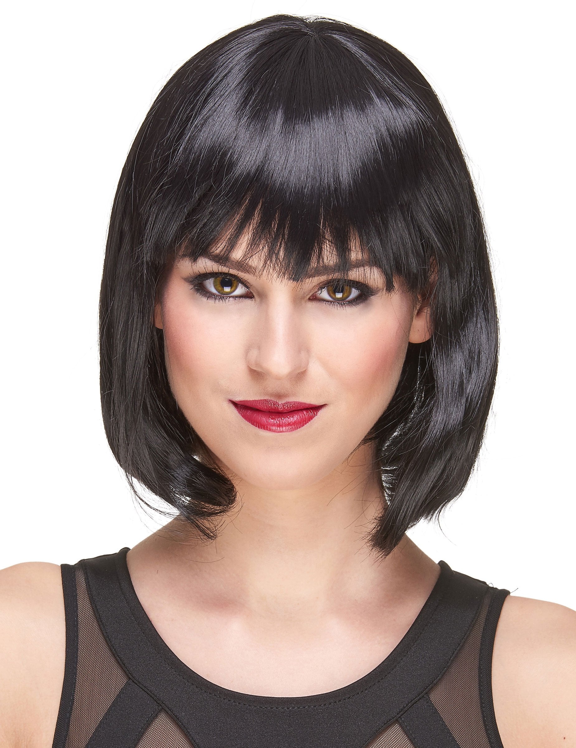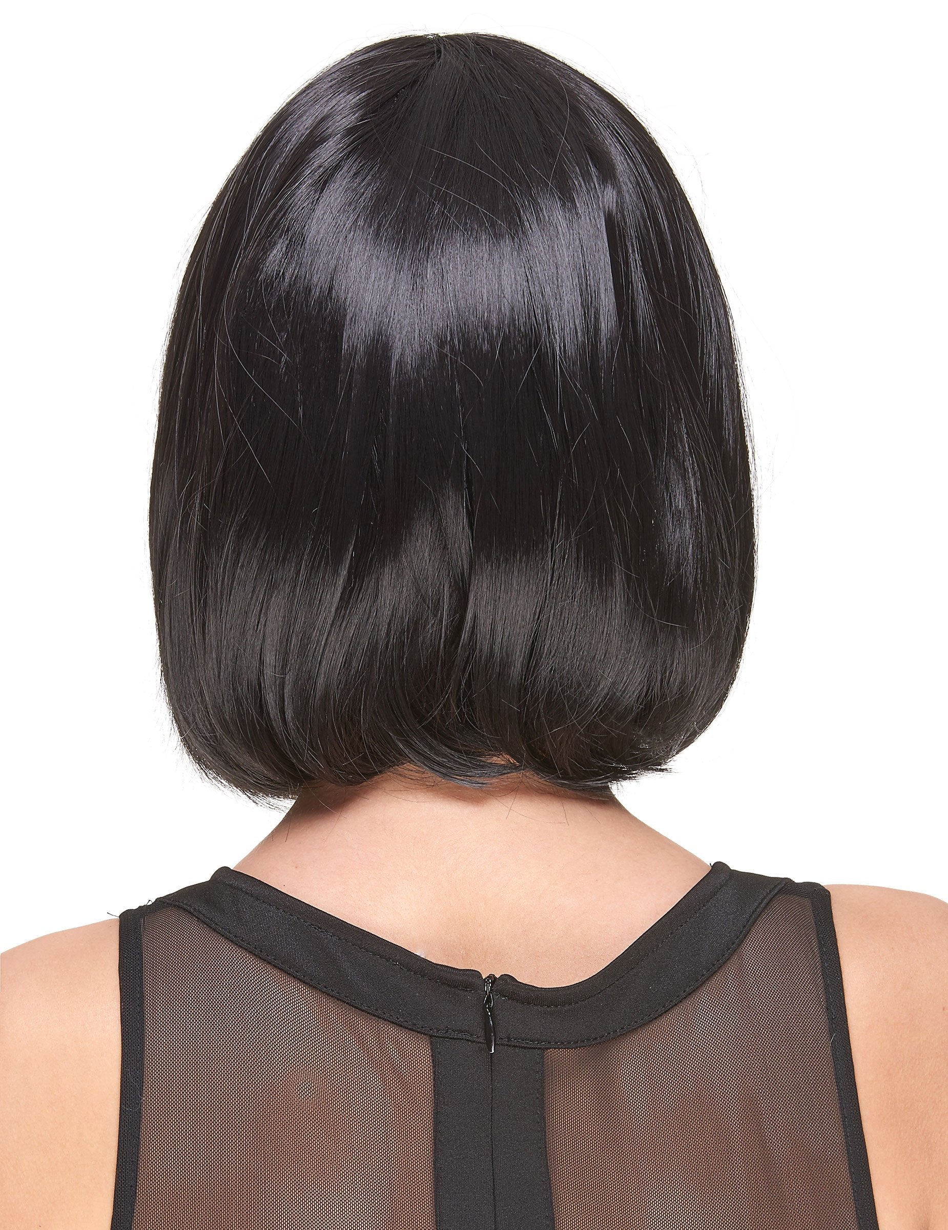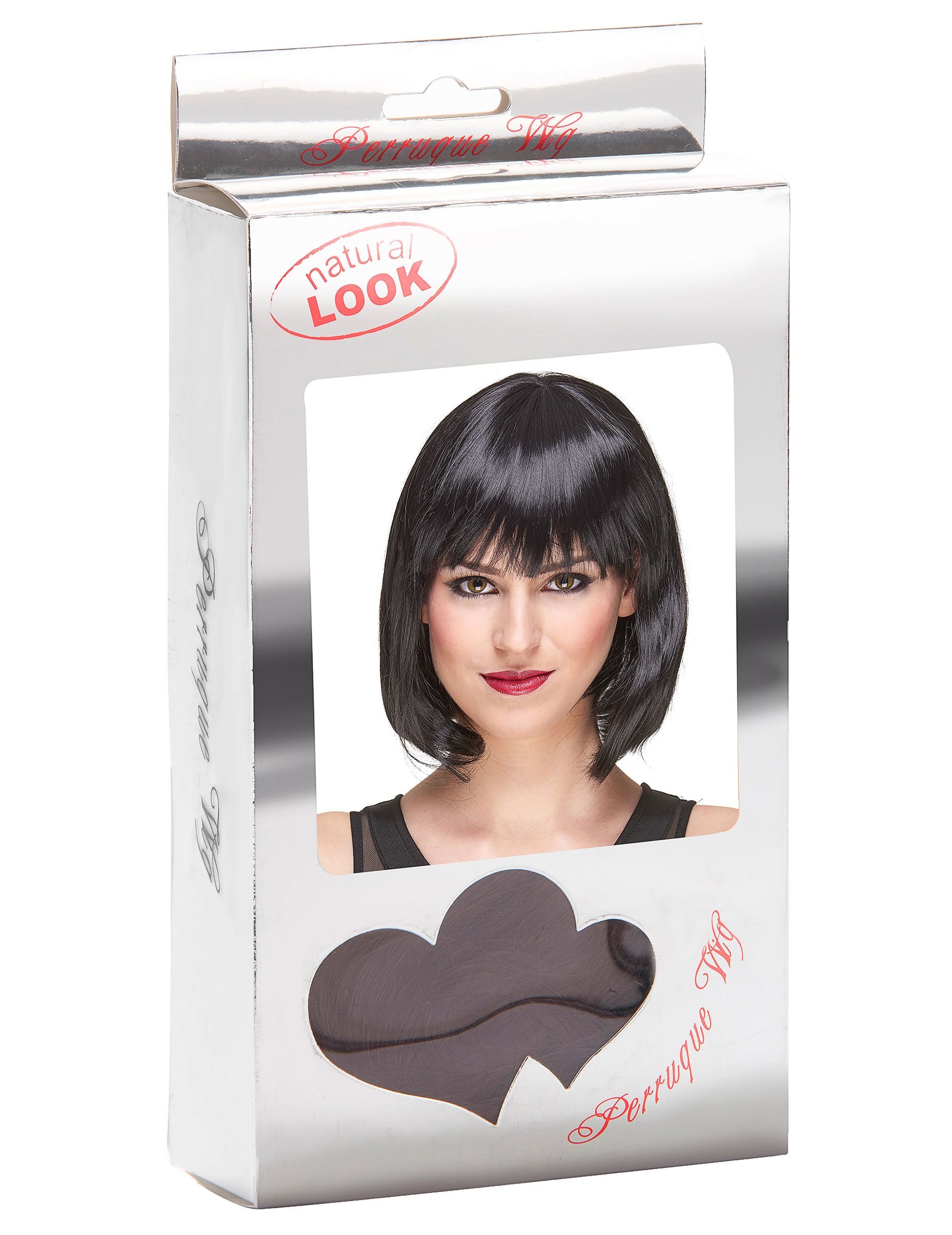 Această perucă neagră pentru femei are părul neted. Această perucă are o tăietură pătrată, cu o franjuri lungi pe față. Va fi ideal pentru completarea unei rochii Charleston sau pentru a opta pur și simplu pentru o tăietură pătrată! Efect garantat în timpul evenimentelor de costum!