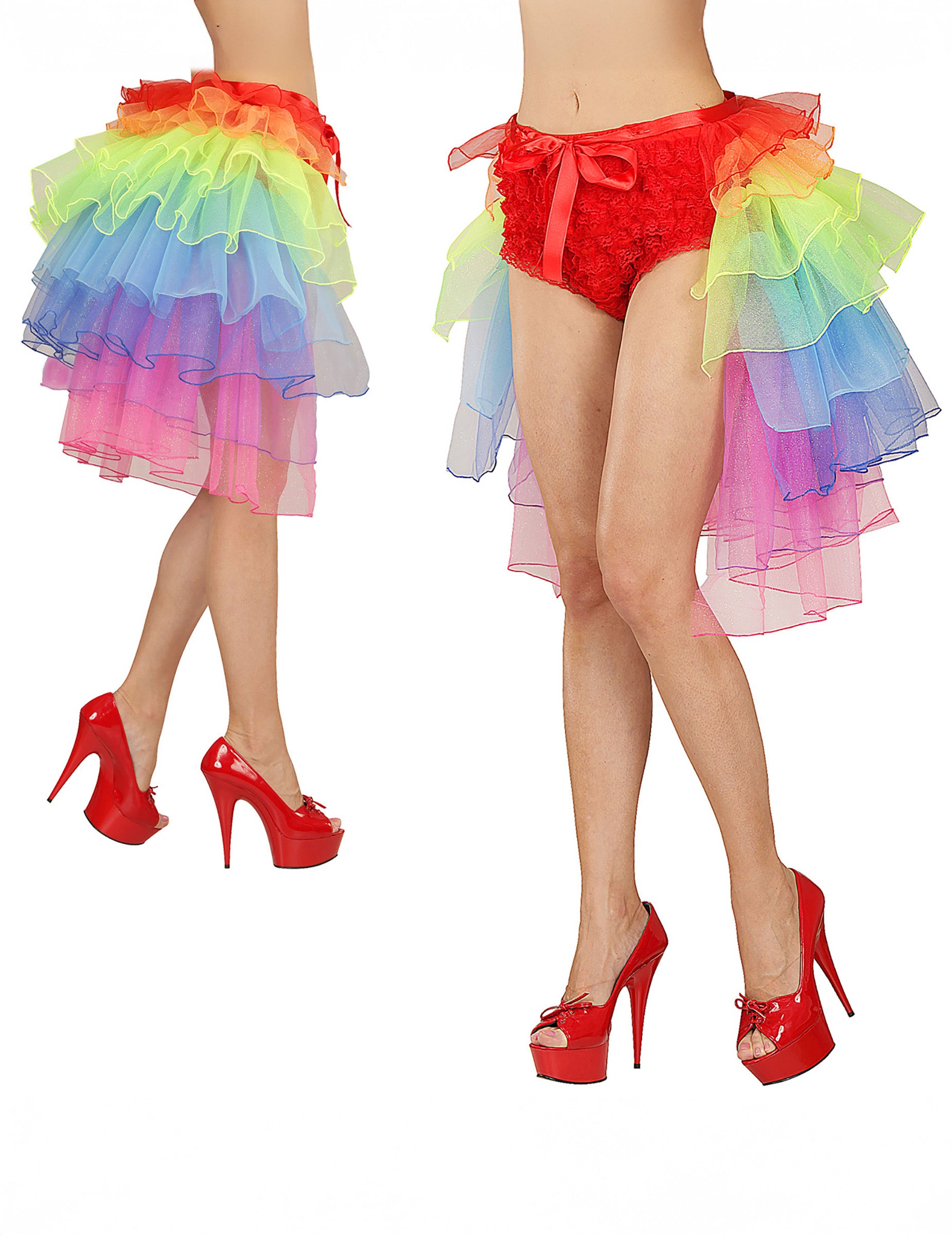 Acest tutu pentru femei este format din pânze multicolore (chiloți nu sunt incluse). Măsoară aproximativ 55 cm lungime și va acoperi doar spatele picioarelor. Acesta din urmă va fi legat pe față și va fi complementul perfect un costum burlesc colorat. Copyright widmann srl Copyright widmann srl