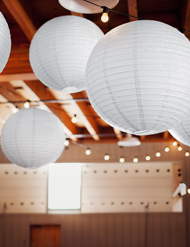 Acest felinar japonez este în hârtie de țesut alb. Măsoară aproximativ 25 cm în diametru. În interior, are o armare din oțel pentru un sprijin mai bun, precum și un cârlig care trebuie suspendat cu ușurință. Acest felinar va fi perfect pentru finalizarea decorației tale festive.