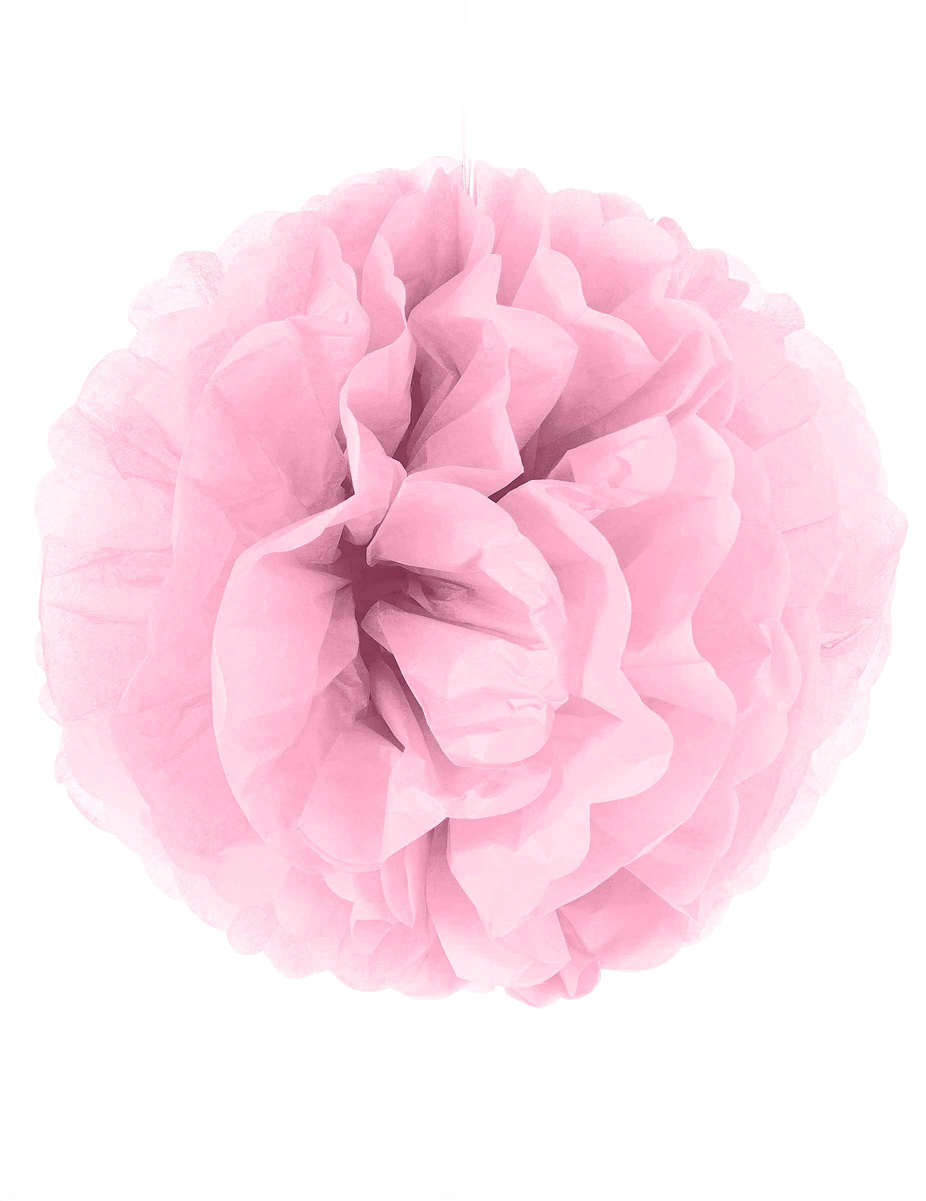 Acest pompom suspendat este roz. În hârtia de țesut, este un diametru de aproximativ 35 cm odată desfășurat. O panglică vă va permite să o suspendați cu ușurință. Acest pompom vă va permite să creați ușor un decor frumos pentru o nuntă sau o zi de naștere.