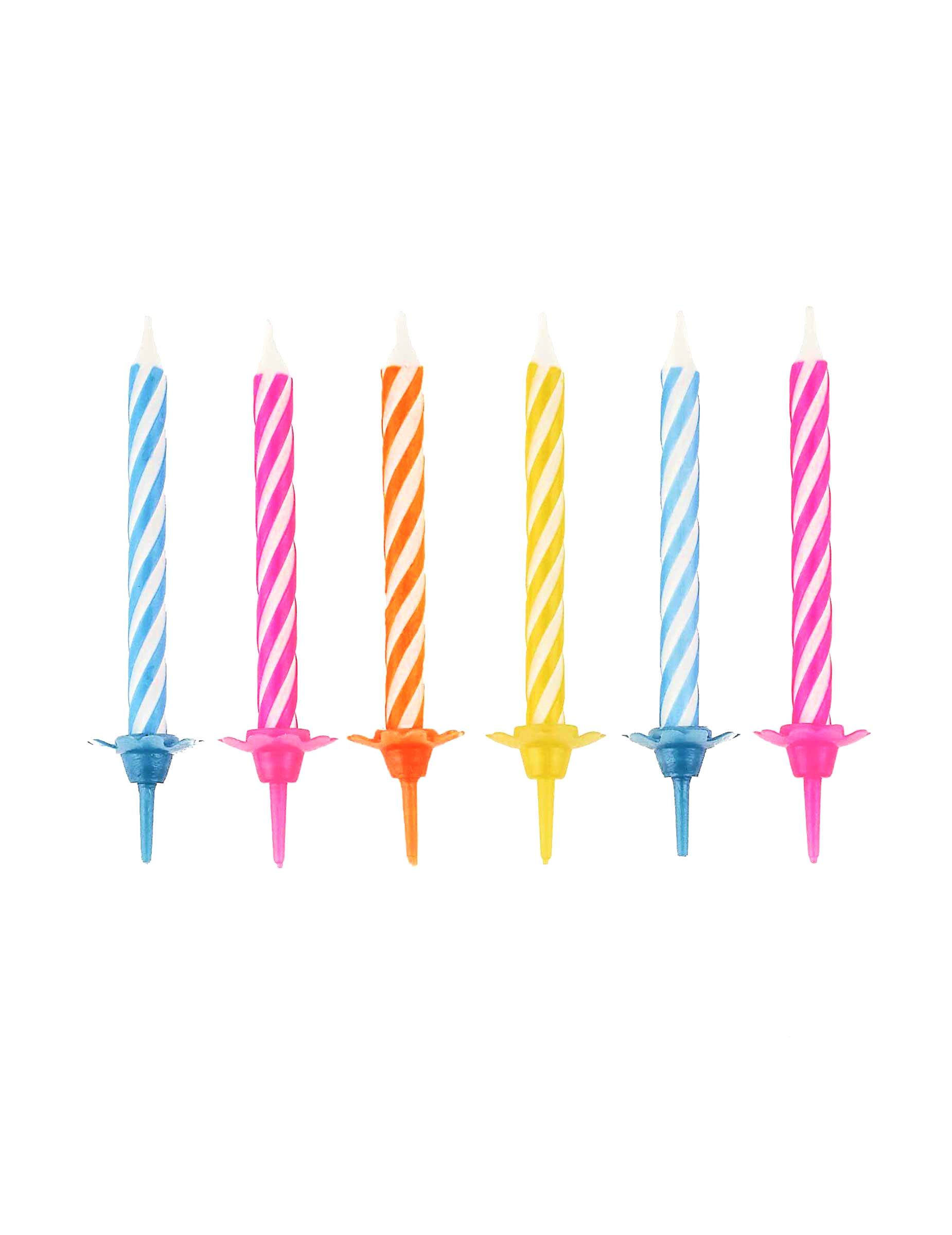 Acest lot este format din 10 lumânări colorate. Acest lot este distribuit în acest fel: 2 portocale, 3 albastru, 3 trandafiri, 2 galben. Acestea au o înălțime de aproximativ 6 cm și sunt prevăzute cu suporturile lor în culorile potrivite. Aceste lumânări vor fi perfecte pentru decorarea unui tort de ziua de naștere.