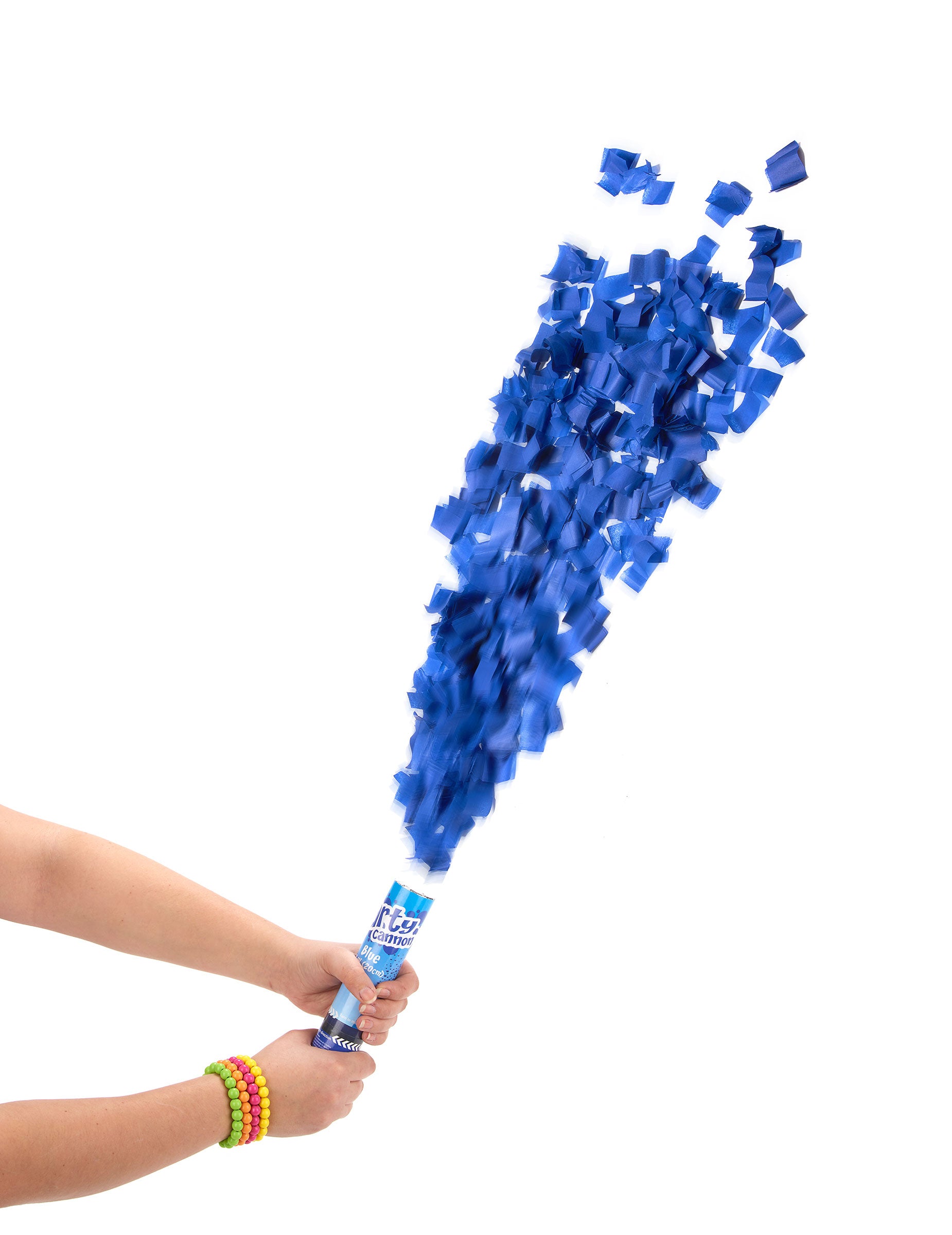 Acest tun de confetti are aproximativ 20 cm înălțime și 4 cm în diametru. Se folosește prin întoarcerea bazei tunului în direcția săgeților. Asigurați -vă că citiți manualul de utilizare înregistrat pe butoi înainte de a -l utiliza. Acest butoi vă va permite să propulsați confetti albaștri. Va fi perfect pentru a -ți amenaja seara de ziua de naștere, de exemplu.