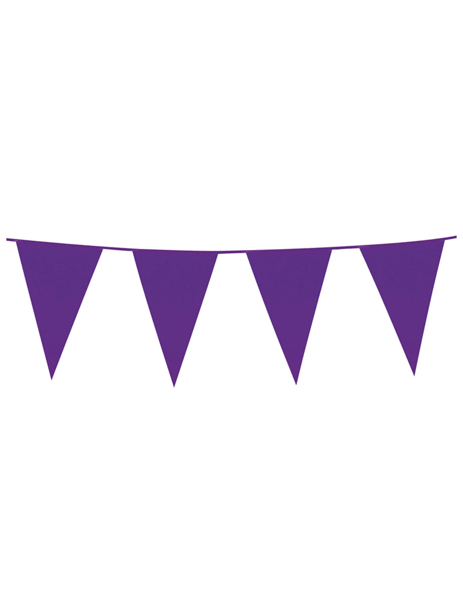 Această ghirlandă de plastic cu pennanturi purpurii are o lungime de aproximativ 10 metri. Este alcătuit din 20 de pennante purpurii de 20 x 30 cm fiecare. Va fi perfect pentru a finaliza cu ușurință decorarea în timpul unei petreceri în tonuri purpurii.