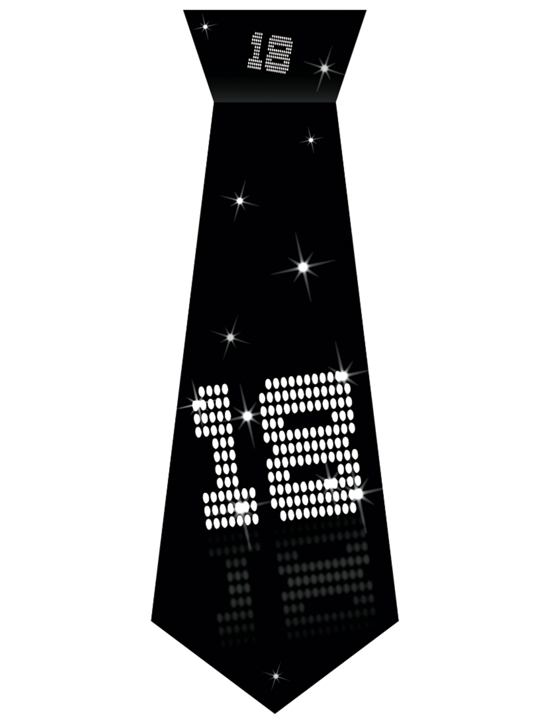 Această cravată de 18 ani de ani este carton. Este negru și are o lungime de aproximativ 45 cm. În față, are figura „18” în alb, precum și stele mici. Un elastic este prezent pentru a atașa această cravată în jurul gâtului. Această cravată destul de 18 ani va fi perfectă de oferit ca cadou de ziua de naștere!