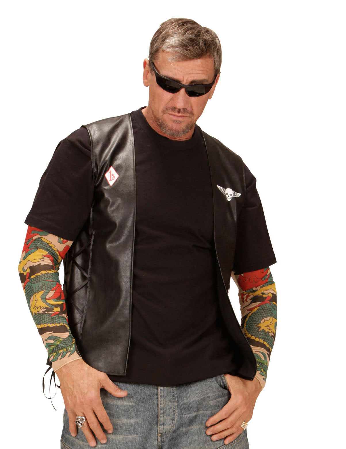 Acest sacou de motociclist măsoară aproximativ 66,5 cm pentru o dimensiune M/L (pahare, tricou și inel care nu sunt incluse). În asemănări negre, nu are mâneci și este deschis. Partea sa rebelă se reflectă în principal în motivele aglomerate pe față și pe spate! Un craniu încadrat cu aripi albe împodobește partea stângă, în timp ce un logo de 1%și alb decorează partea dreaptă: Efectul de motociclist garantat! În spate este un craniu alb uriaș, aglomerat cu expresia bicicliștilor Outlaw (= Bikerii Outlaw) în roșu și alb care anunță culoarea! În cele din urmă, un corset din dantelă decorează părțile laterale ale sacoului! Scoate -ți partea rebelă și înconjoară -te de cea mai bună trupă în serile tale deghizate! Copyright Widmann Srl