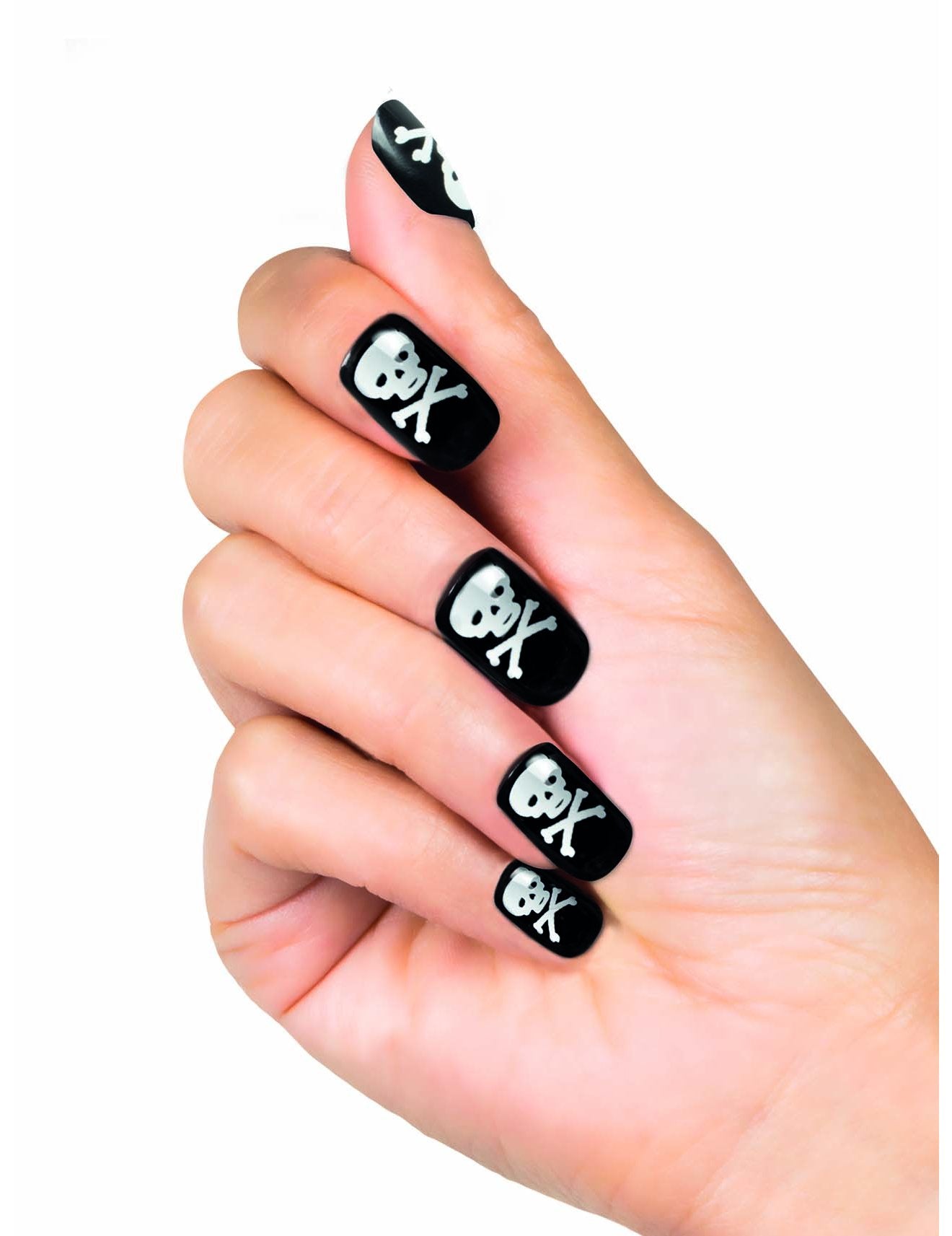 Acest kit de unghii false pirat este alcătuit din 24 de unghii false și 24 de adezivi dublu -lated. Unghiile sunt negre lămâi cu un craniu alb, simbol al pirateriei. Adezivii vă vor permite să reparați cu ușurință unghiile false și vor asigura un sprijin bun. Își vor perfecționa femeia pirat deghizează perfecțiunea!