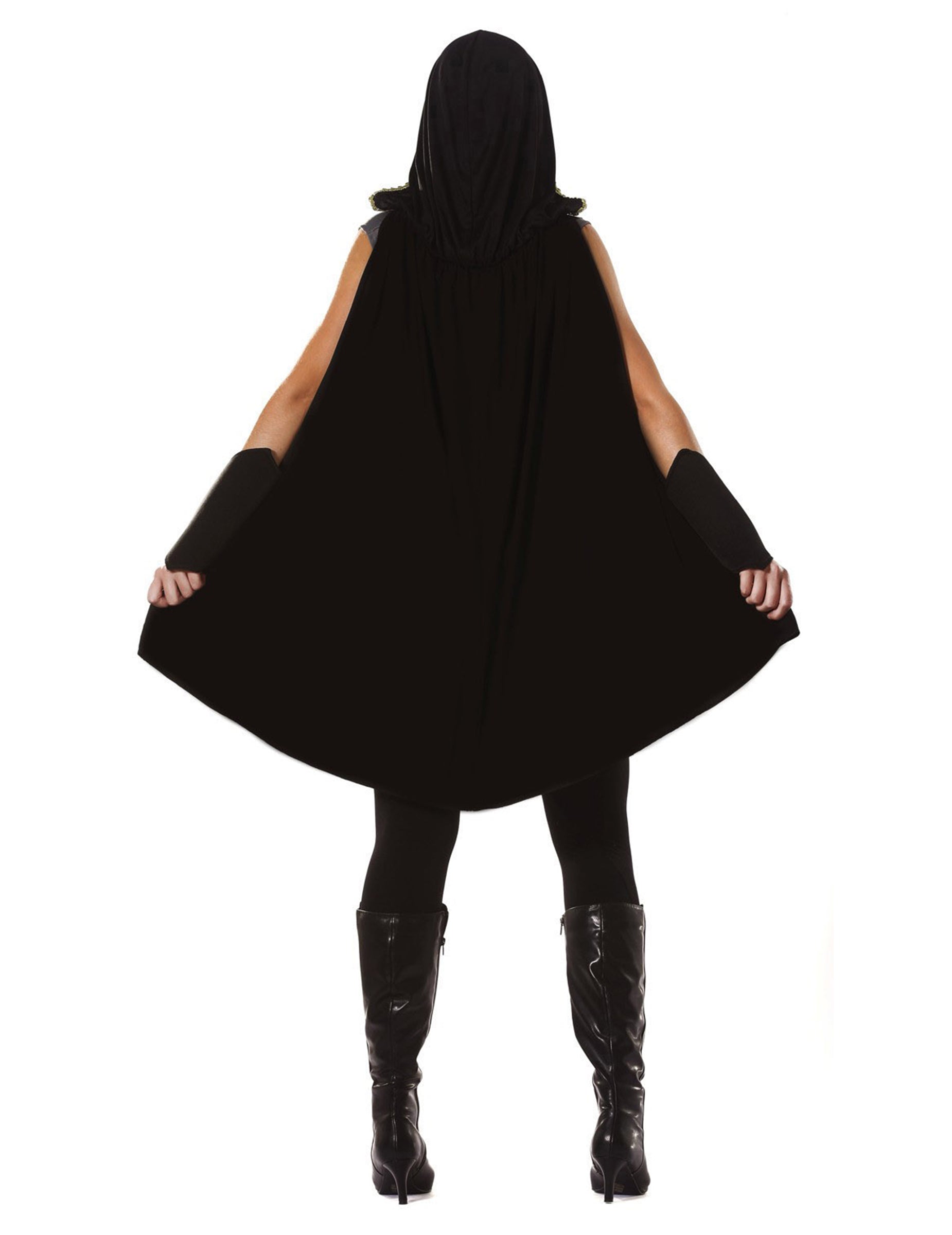 Acest costum Archer pentru femei include o rochie cu pelerină, două manșete și o centură (colanți, arc și cizme care nu sunt incluse). Rochia este gri, scurtă și fără mâneci. Materialul este fluid și va fi plăcut de purtat. Capul negru este zgâriat pe umeri și are o capotă mare de împletitură aurii care vă va acoperi tot părul. Un umăr cu aspect din piele este cusut în diagonală a bustului. O buclă de aur falsă este acolo. Manșetele sunt confecționate din spumă neagră cu o parte elastică pentru a le pune ușor. În cele din urmă, centura va fi înnodată în spate și prezintă un frumos imprimeu de aur reprezentând în special un Phoenix în centrul său. Această deghizare foarte feminină a lui Archère va fi ideală pentru a cânta Bandits of the Woods în timpul unui eveniment deghizat.
