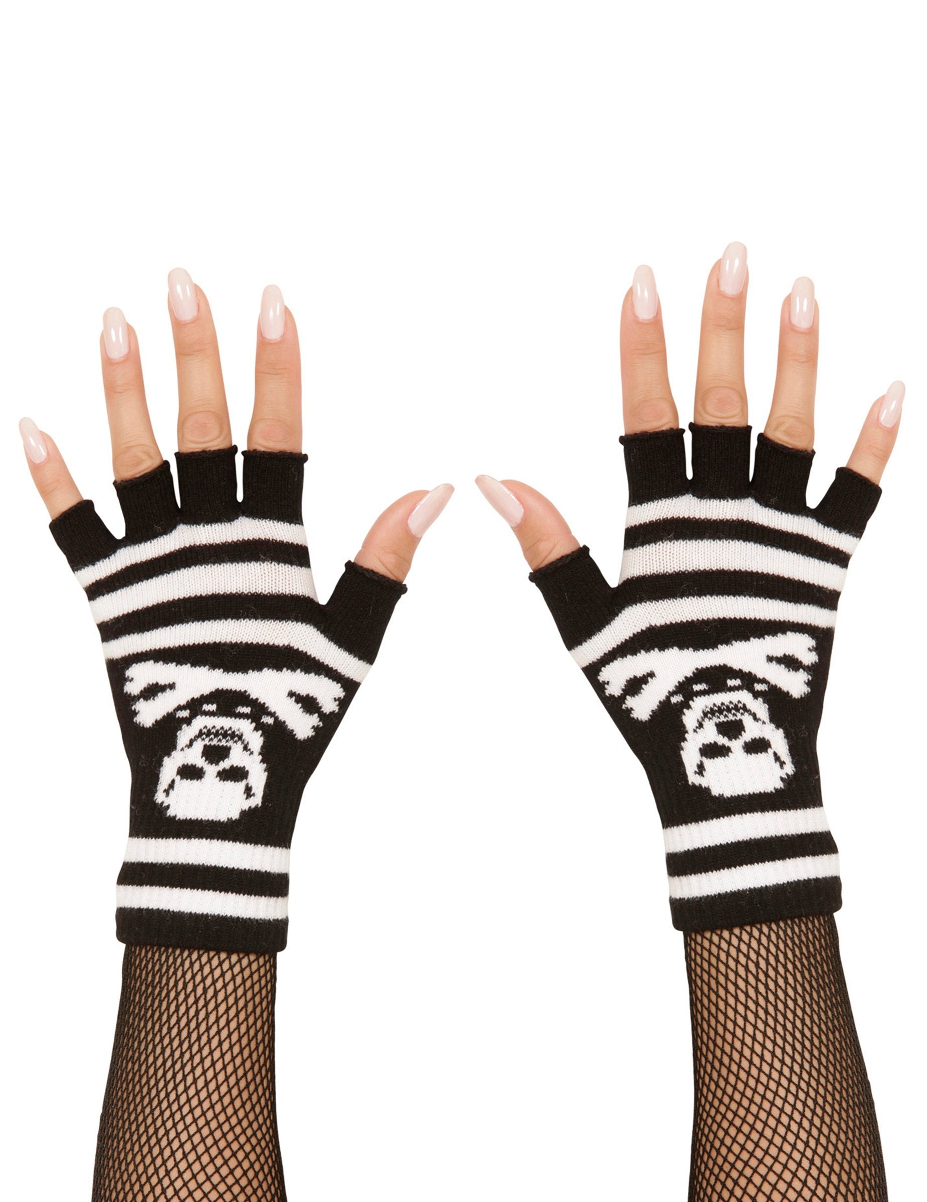 Aceste mittene pentru adulți sunt negri cu dungi albe și sunt împodobite cu un cap de pirat alb pe spatele mâinii. Au aproximativ 28 cm lungime și se vor potrivi adulților. Aceste mittens vor fi ideale pentru completarea costumului de Halloween sau pentru o seară deghizată! Copyright Widmann Srl