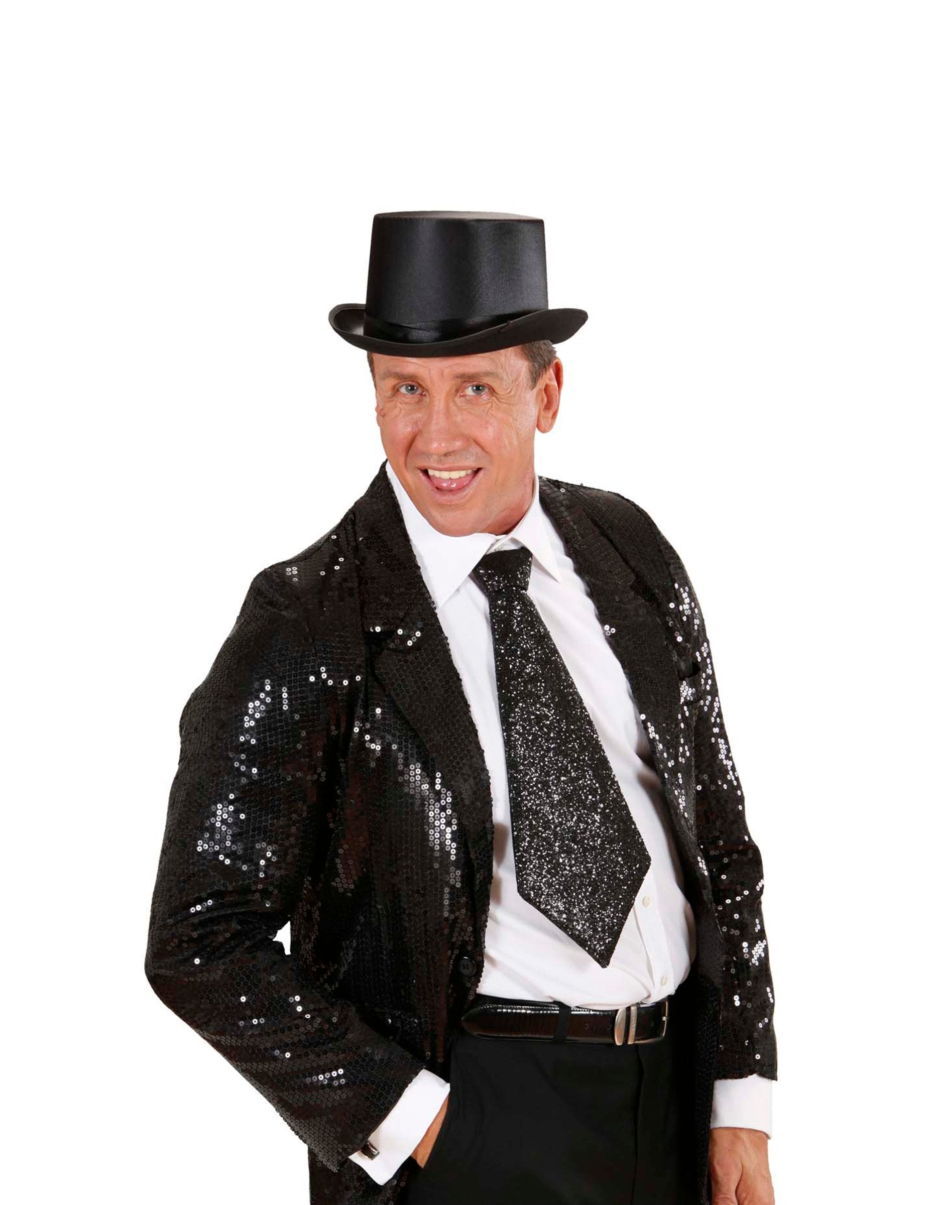 Această cravată neagră pentru adulți este acoperită cu sclipici neagră (rămâne nu este inclusă). Este deja înnodat și se menține folosind un elastic negru pentru a trece în jurul gâtului. Măsoară aproximativ 40 cm lungime și aproximativ 15 cm la cea mai largă. Această cravată de foarte bună calitate va fi accesoriul ideal pentru a -ți completa ținuta pentru noul an sau pentru o seară „Rhinestone + Paillettes”! Copyright Widmann Srl