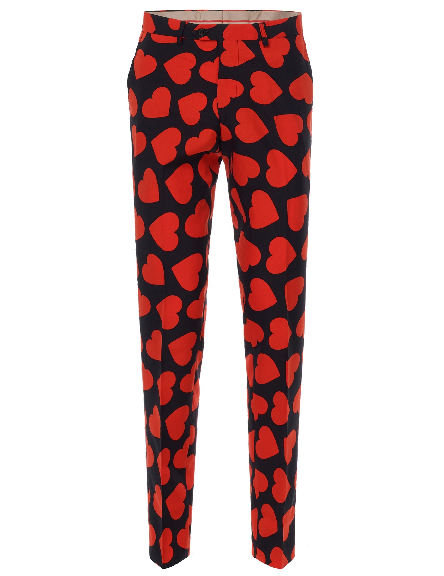 Acest costum Domnul King of Hearts for Men este de marcă opusă. Include o geacă, pantaloni și o cravată (cămașă albă și pantofi negri nu sunt incluse). Fiecare bucată din costum este formată dintr -o țesătură neagră cu inimi roșii. Jacheta are buzunare față false, precum și 2 buzunare interioare. Se închide folosind 2 butoane în față. Pantalonii au buzunare în față și în spate. Un fermoar, un buton și un cârlig îl permit să fie închis. Dacă doriți să purtați o curea, trecătorii -de a fi prezenți în jurul taliei. Cravata va completa această ținută. Acest costum al domnului King va fi ideal pentru a purta cu ocazia unei seri originale sau de Ziua Îndrăgostiților!