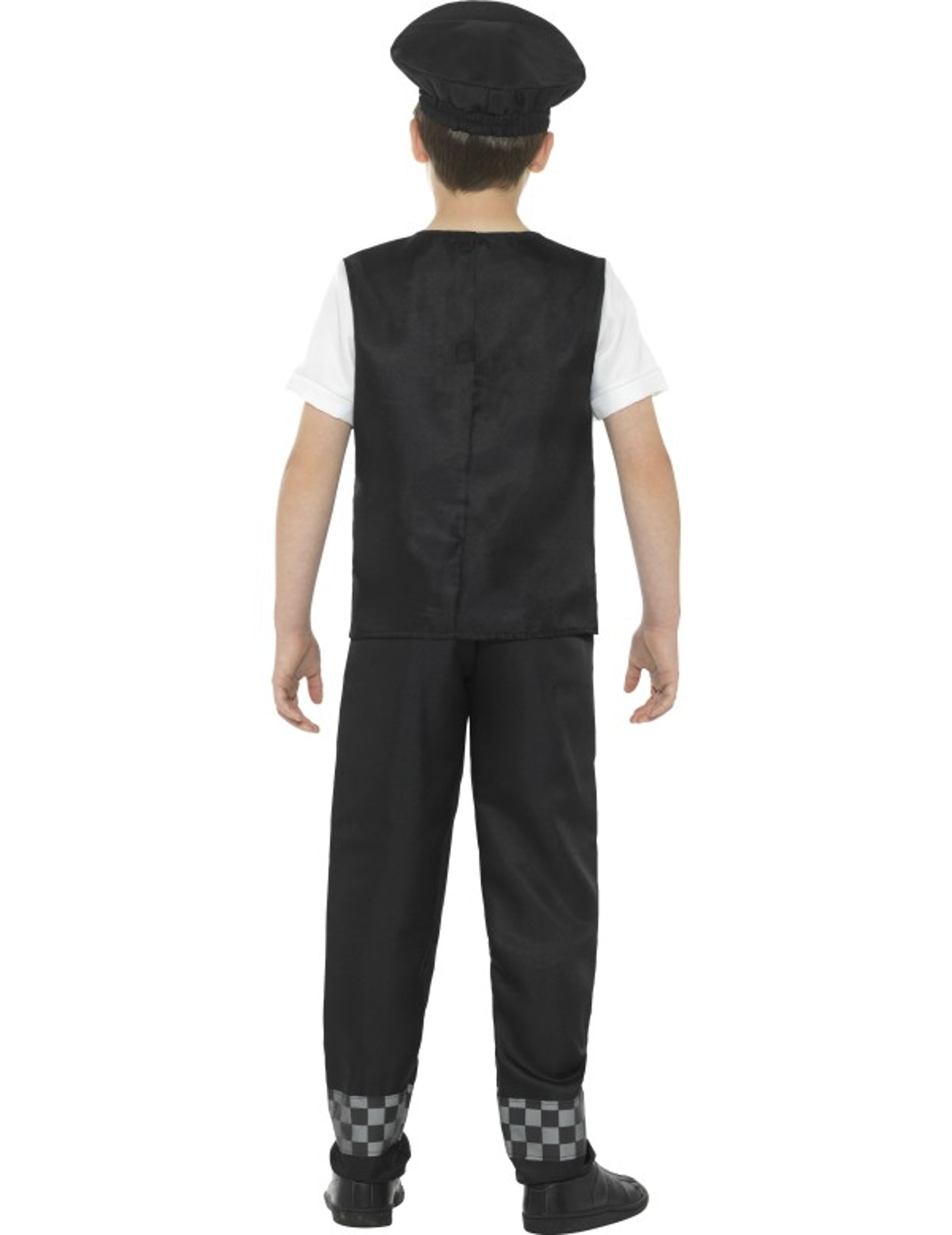 Acest costum de poliție alb -negru pentru copii este format dintr -un mare, pantaloni și o pălărie. Partea de sus este un tricou alb-negru cu mâneci scurte. El are înregistrarea „poliției” și un ecuson de poliție pe față. În ceea ce privește pantalonii, este negru. O pălărie pe care va fi prezentă un ecuson de poliție va completa această ținută. Întregul reprezintă o copie perfectă a ținutei de poliție britanică. Acest costum al poliției va fi ideal pentru copilul dvs. în timpul carnavalului!
