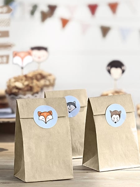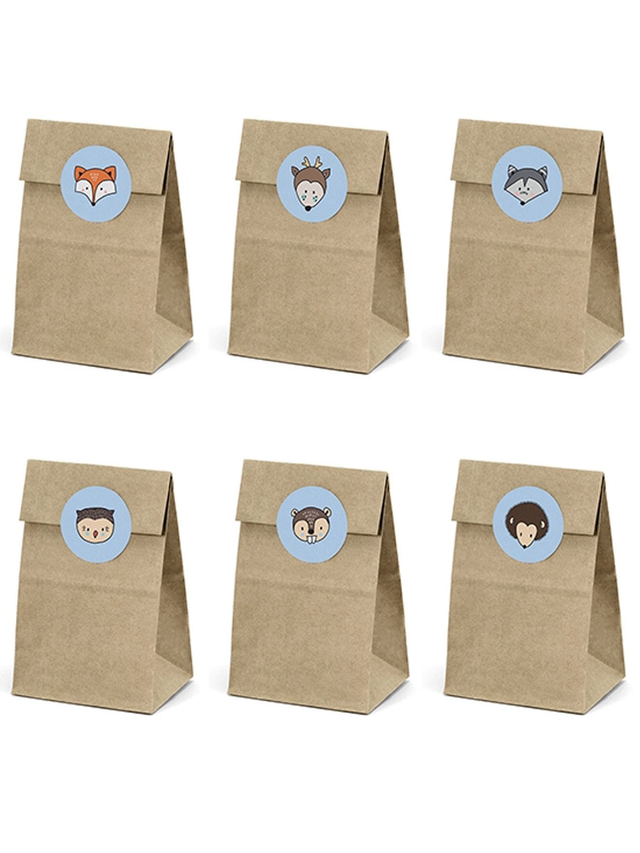 6 pungi din hârtie kraft și stickere cu animale din pădure