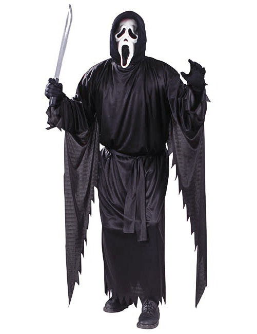 Acest costum țipăt este compus dintr -o rochie cu capotă, o mască și o centură (mănuși și cuțit nu sunt incluse). Această ținută oficială de licență este la fel de realistă ca în filmul de groază! Rochia este neagră cu o capotă și mâneci lungi tăiate în vârfuri. Centura este legată în jurul taliei. Masca lui Scream reprezintă o fantomă albă țipătoare. Costumul Scream pentru bărbați este ideal pentru Halloween.