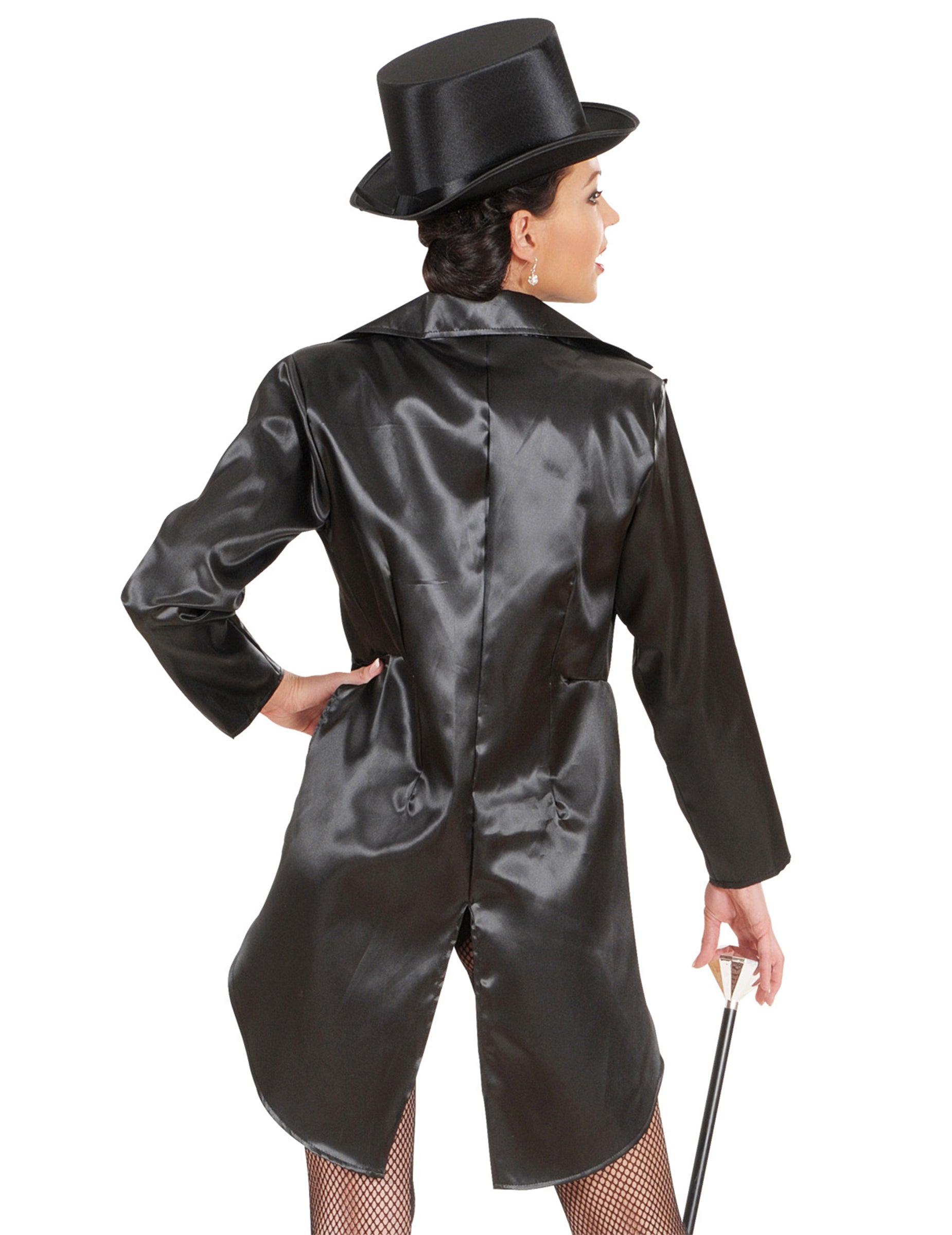Acest frac superb pentru coada pentru femei este culoarea neagră (combinație, pălărie, trestie, ciorapi și papion nu sunt incluse). Este făcut special pentru dansatorul de scenă și este proiectat în timp ce un satin strălucitor. Acest frac poate fi purtat în timpul unui spectacol (de exemplu, magia) sau în timpul petrecerii de carnaval. Copyright Widmann Srl