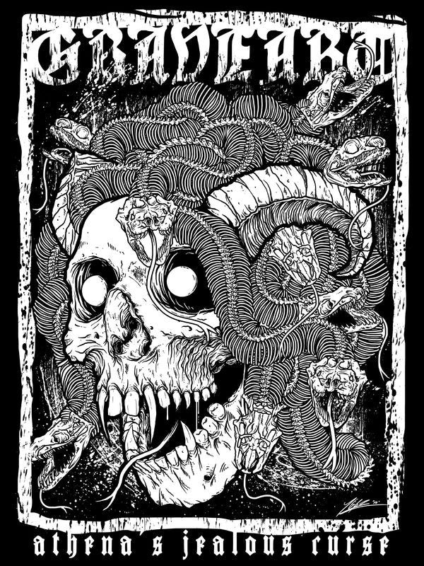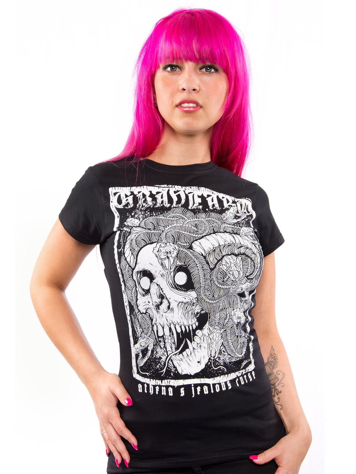 Acest top negru cu craniu pentru femei este ideal pentru un look rebel și misterios. Împodobit cu un motiv mare de craniu alb, cu coarne și șerpi, adaugă o notă rock și întunecată ținutei tale. Contrastul său alb-negru atrage atenția și îți scoate perfect în evidență stilul. Confortabil și ușor de asortat cu pantaloni închiși la culoare sau o fustă scurtă, acest top va deveni rapid o piesă cheie în garderoba ta. Perfect pentru o petrecere de Halloween!
