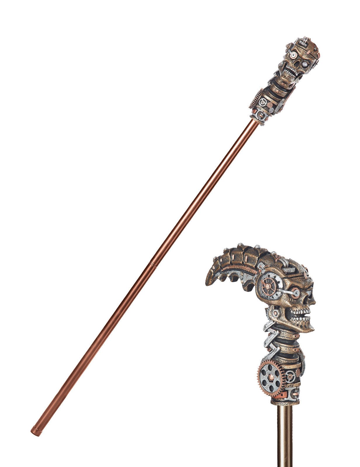Acest baston steampunk este pentru adulți. Este livrat în 2 părți și măsoară aproximativ 100 cm lungime atunci când este montat. Ea este bronz, cu un craniu cu un aspect steampunk pe partea de sus (cogs, șuruburi ...). Acest accesoriu va fi original pentru a finaliza deghizarea steampunk în timpul unei părți deghizate.