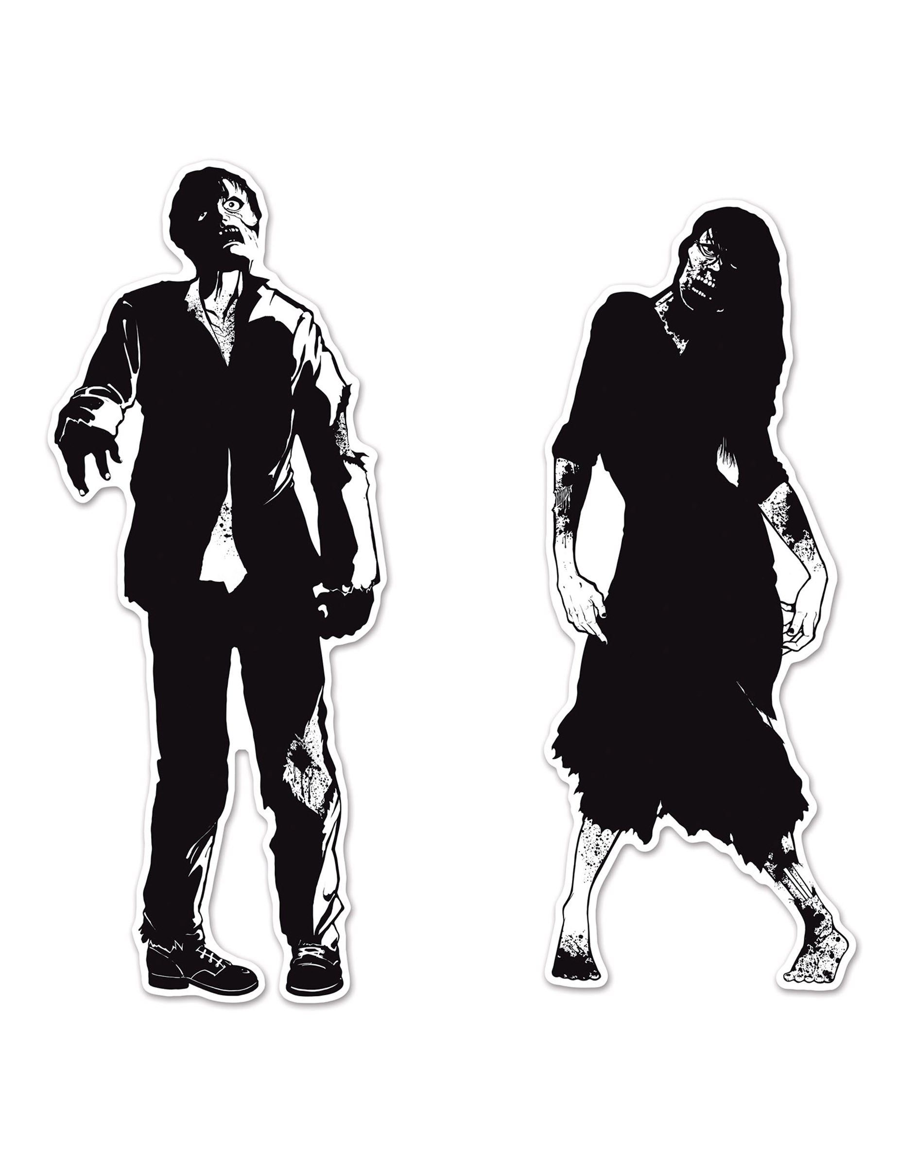 Aceste două decorațiuni reprezintă siluetele alb -negru ale zombi. Un bărbat și o femeie care par să se îndrepte spre noi, pentru a reapărea intestinele primei persoane pe care o vor întâlni. Cu aceste siluete zombie, interiorul tău va fi rece în spate pentru Halloween!