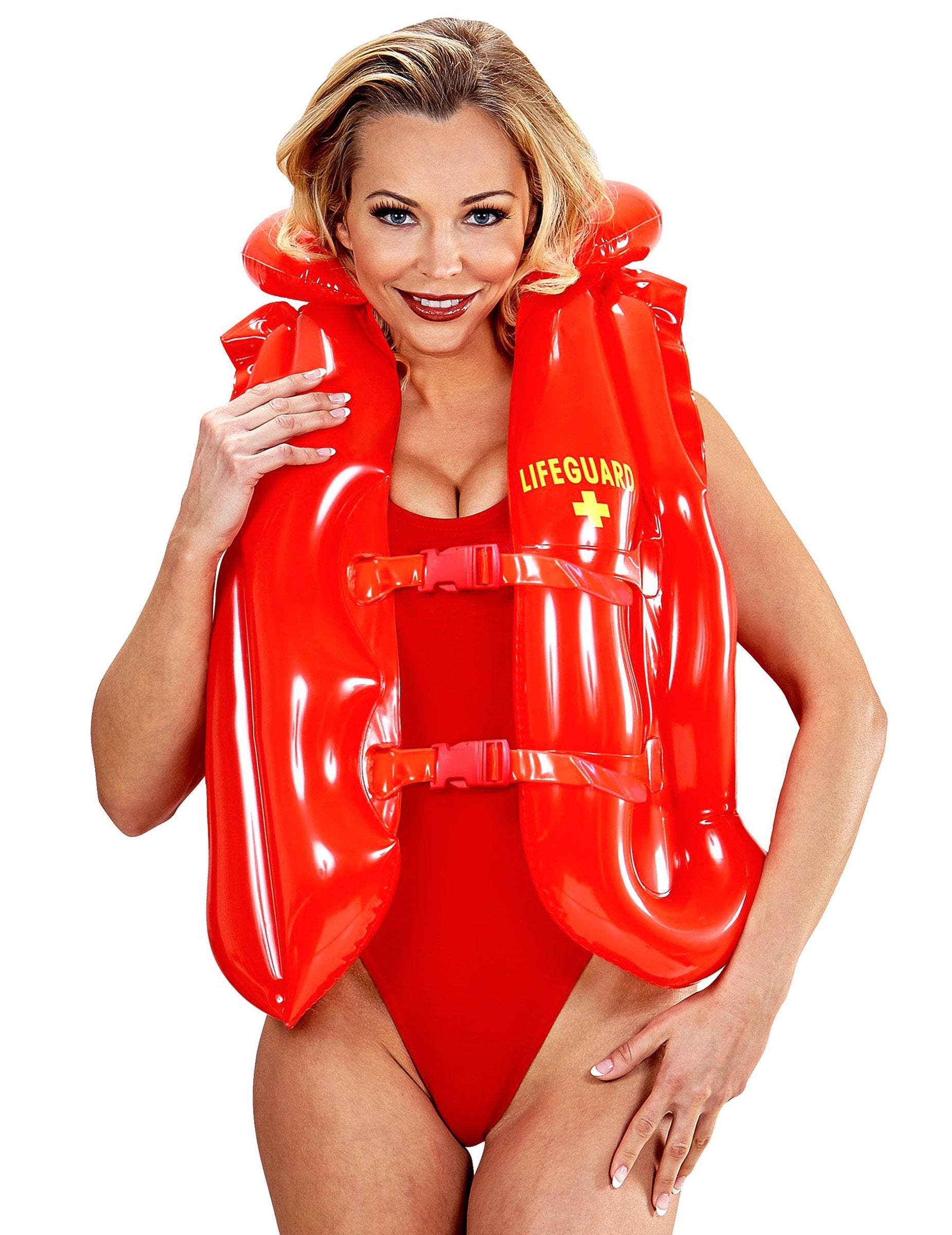Acest sacou de salvare gonflabilă pentru adulți este portocaliu cu inscripții de salvare (salvator) și o cruce de salvator galben pe partea din față și în spate a vestei. Se închide cu două clipuri pe față. Cu această geacă de salvare pentru a -ți finaliza deghizarea de prim ajutor, prietenii tăi se vor simți în siguranță în timpul serilor deghizate pe tema plajei!