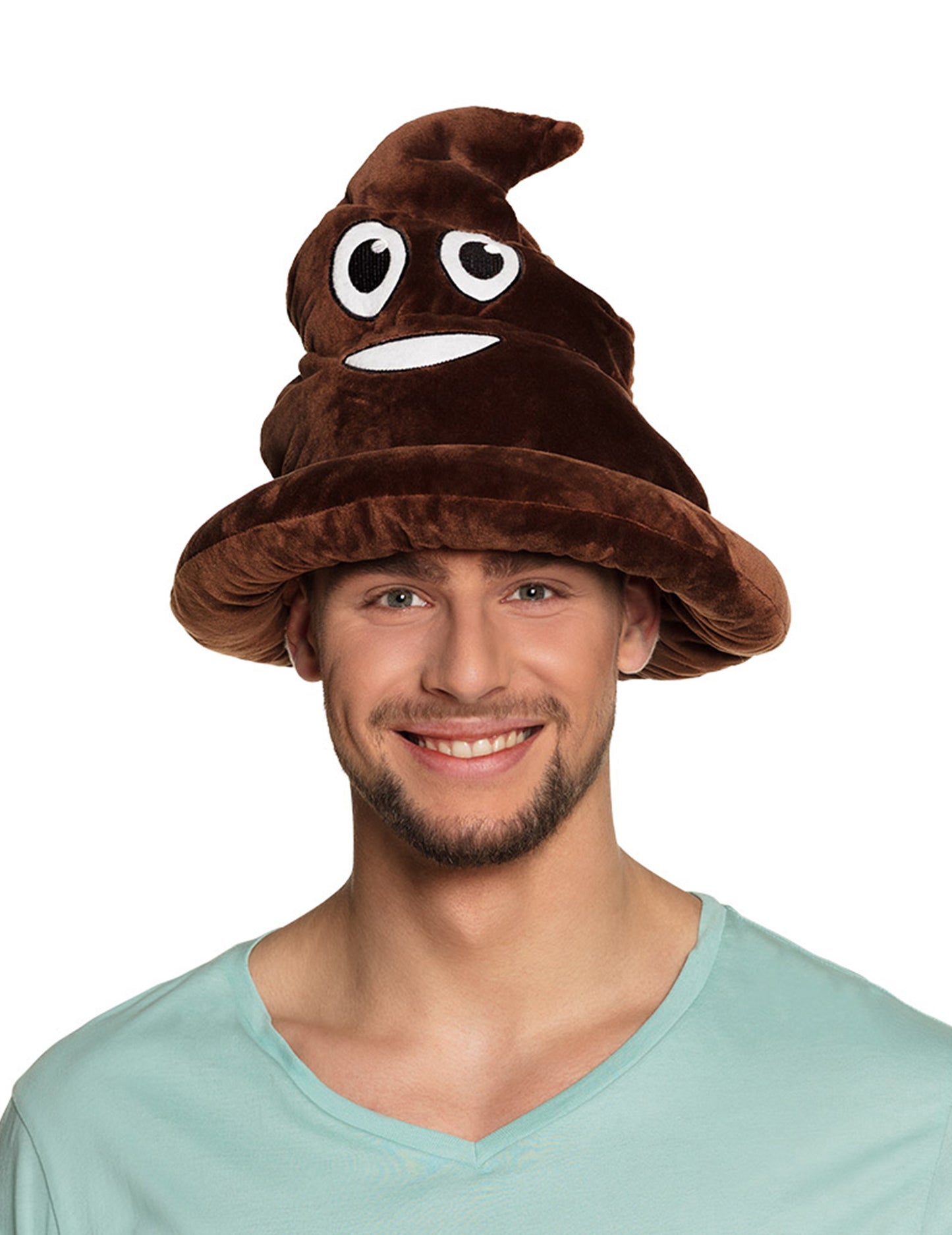 Această pălărie de aspect de catifea maro este căptușită. Această pălărie plină de umor este în formă de excremente care vă înfășoară pe cap. Acesta are doi ochi și o gură zâmbitoare. Cu această pălărie originală optează pentru o privire ... în afară de ... și declanșează hilaritatea sau temerea pentru o seară deghizată pe tema emoticoanelor, de exemplu, optând pentru emoticonul poop!