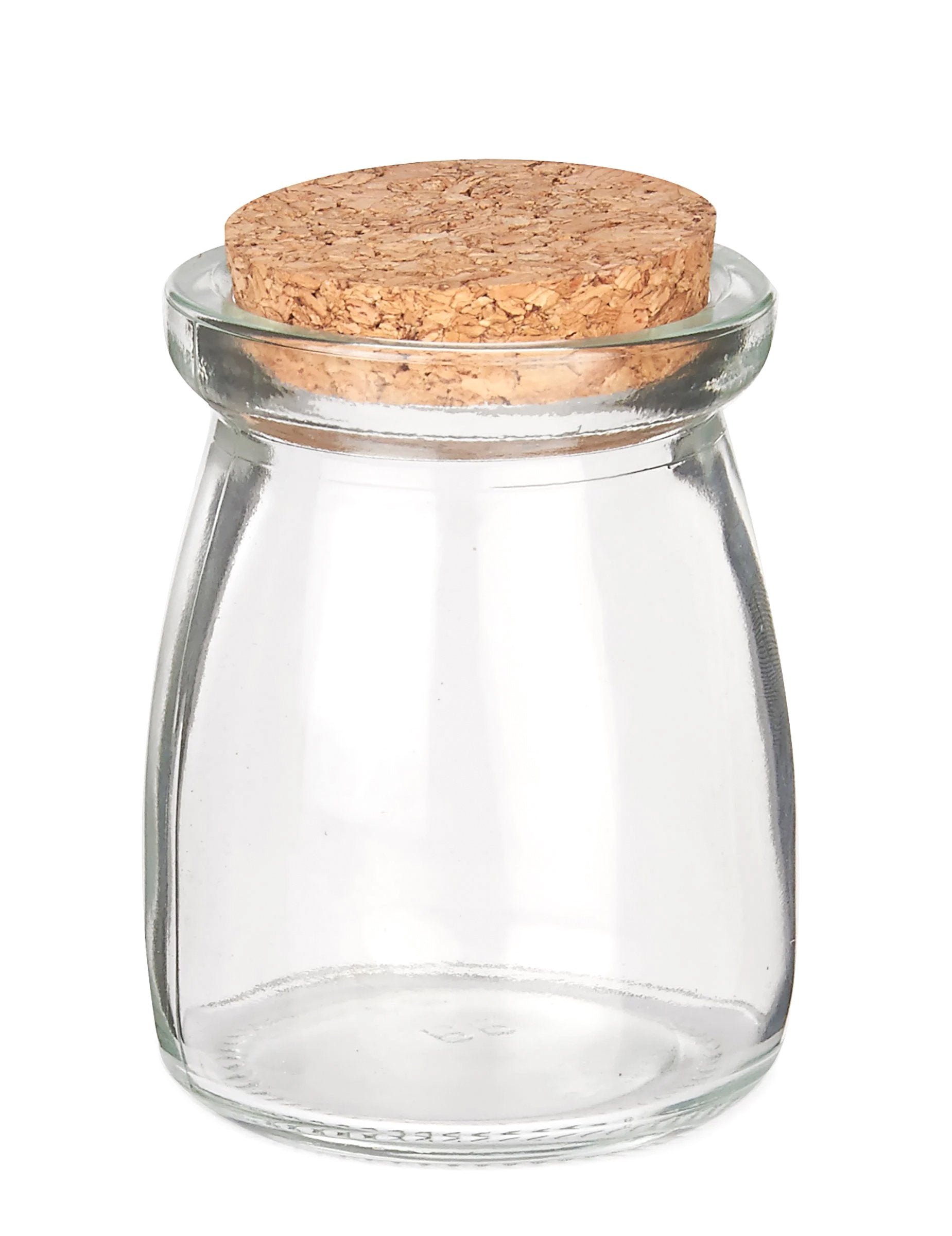 Borcan de sticlă mic cu dop de plută de 8 cm