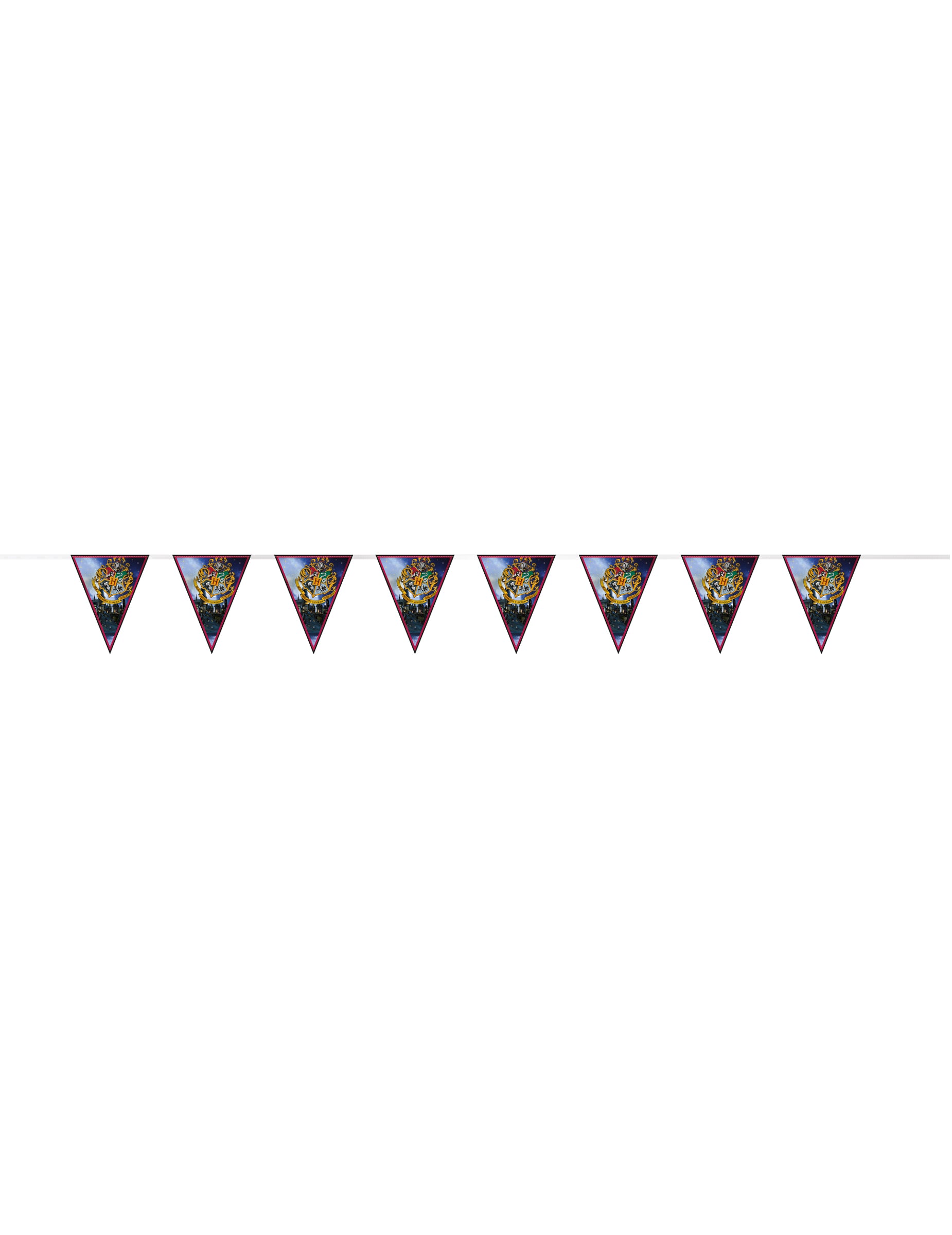 Acest kit oficial de licență Harry Potter conține 7 articole decorative. Veți găsi 1 ghirlandă pennant, 4 suspensii în spirală și 2 centre de masă. Garlandul este format din pennante triunghiulare din plastic. Are o lungime de aproximativ 2,43 metri. Este tipărit cu stema celebrei școli de magie pe un fundal reprezentând Școala Hogwarts. Cele 4 suspensii constau dintr -o spirală de plastic galbenă și un autocolant de carton imprimat al stratului Hogwarts. În cele din urmă, cele două centre de masă constau dintr -o bază de hârtie albastră drăguță și un autocolant de carton cu imaginea caselor Gryffindor și Slytherin. În fundal, veți găsi Castelul Hogwarts. Au aproximativ 15,2 cm înălțime. Acest lot va fi esențial pentru a crea o decorare a camerei Harry Potter pentru ziua de naștere a copilului tău! Petrecere unică de branding