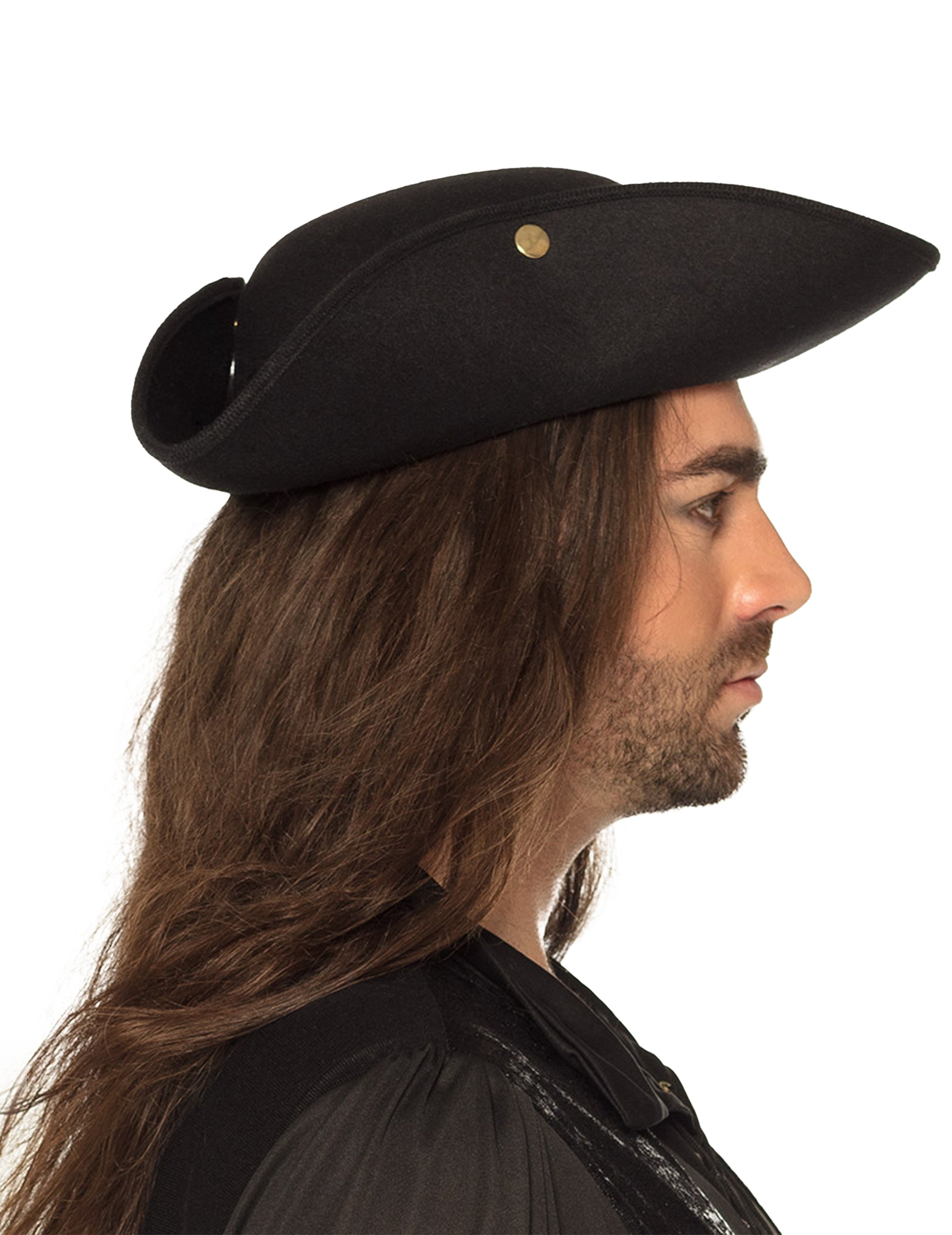 Acest tricorn negru emblematic pentru secolul al XVIII-lea Este prevăzută cu nasturi cu capsă, permițând atașarea sau lăsarea neatașată a borului pălăriei de coroană. Circumferința capului este de aproximativ 58 cm.
