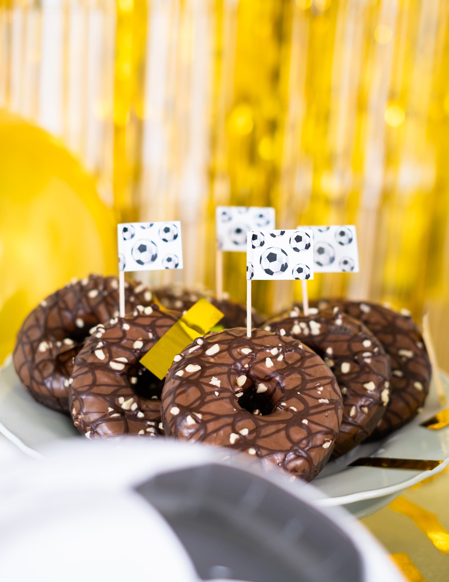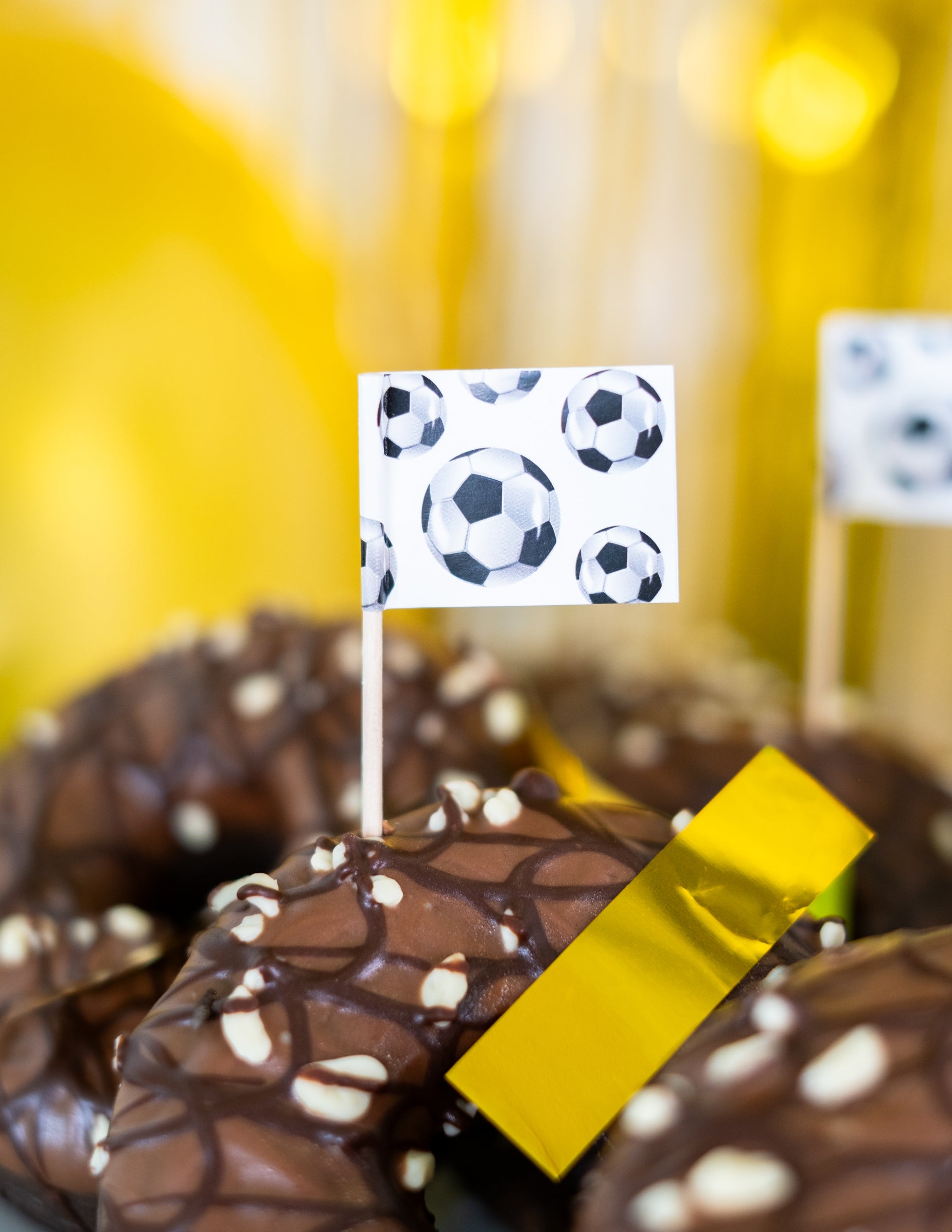 Acest plic include 24 de vârfuri de lemn îmbrăcate în steaguri mici decorate cu bile mici de fotbal. Sticks mici măsoară 7 cm Envrion. Cu ocazia unei seri de fotbal cu prietenii, puteți folosi aceste mici vârfuri de aperitiv pentru a vă decora mesele!
