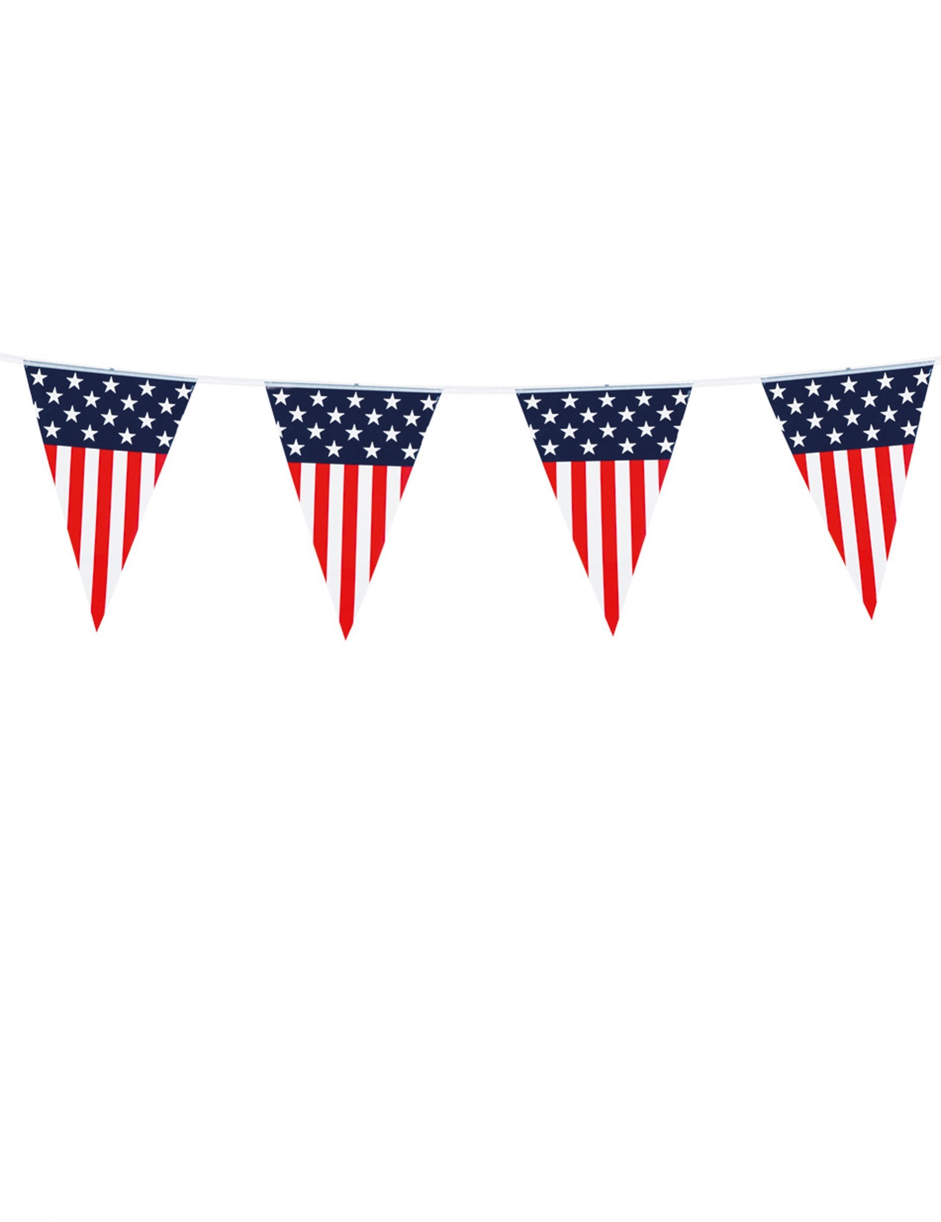 Această ghirlandă din Fanions Statele Unite are o lungime de aproximativ 6 metri. Este format din mai multe pennante de plastic. Fiecare pennant măsoară aproximativ 20 x 30 cm. Sunt tipărite cu un model reprezentând steagul SUA. Această ghirlandă va fi perfectă pentru un decor al SUA în timpul petrecerii tematice.