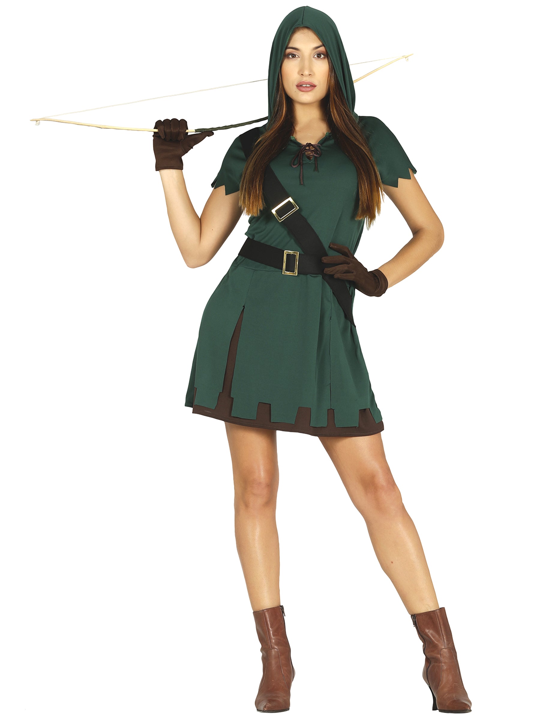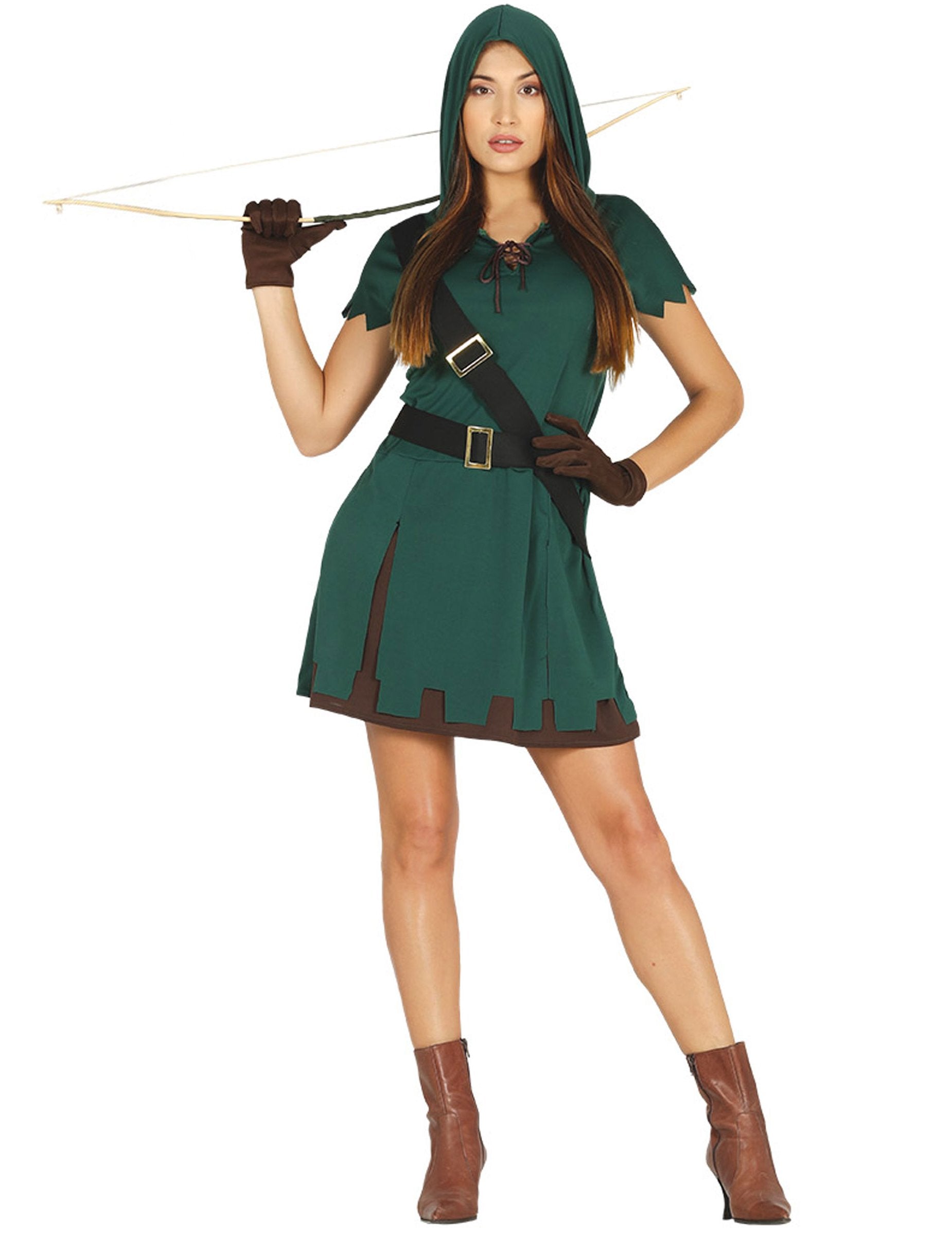 Acest costum verde Archer este destinat femeilor. Este format dintr -o rochie și două curele (arc și mănuși care nu sunt incluse). Rochia cu mânecă scurtă este verde, cu o căptușeală maro care iese pe fund. Are o capotă și o dantelă maro decorează trecerea. Două centuri negre cu bucle de aur însoțesc ținuta. Unul merge la talie, celălalt peste bust. Cu acest costum Archer nu veți putea pierde ținta dvs., în următoarea seară deghizată.