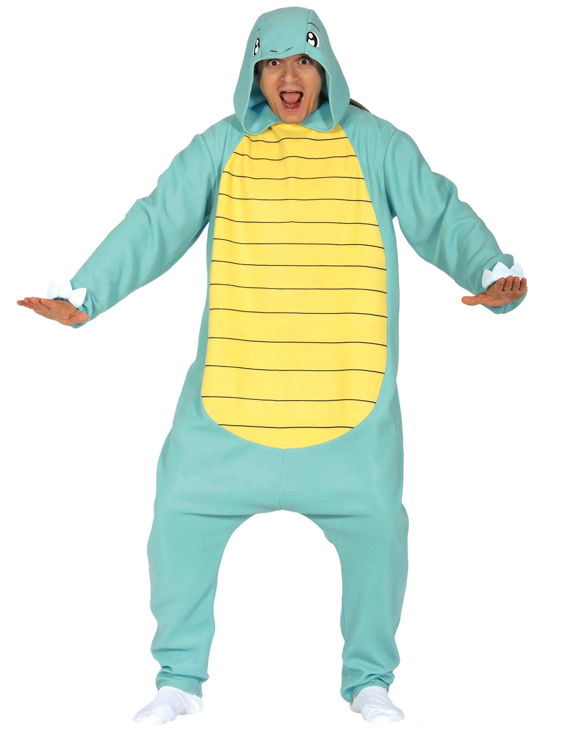Acest costum de broască țestoasă este destinat adulților. Este format dintr -o combinație cu Hood. Combinația este albastră cu o burtă galbenă în dungi. O coajă falsă de relief este cusută în spate, iar capota reprezintă fața unei broaște țestoase. Acest costum vă va aminti cu siguranță de un celebru monstru de broască țestoasă! Așa că aveți grijă să nu fiți capturați, în următoarea seară deghizată ... ei bine! Depinde de tine!