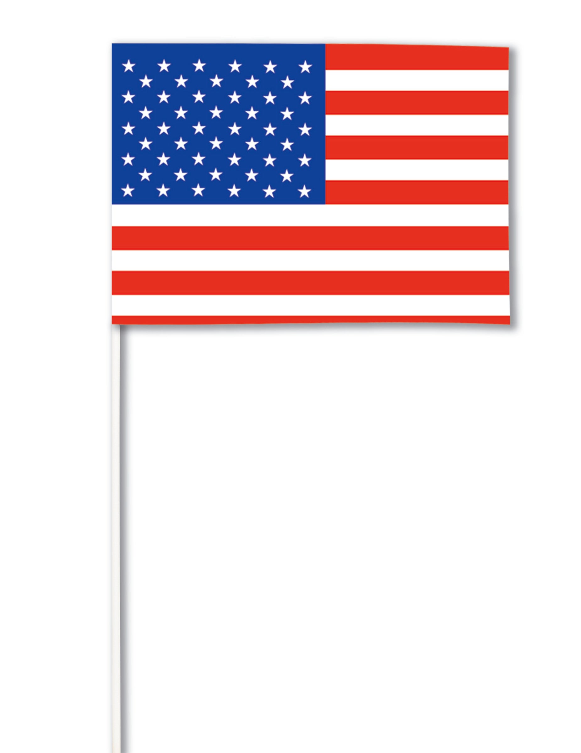 Acest steag de hârtie măsoară aproximativ 14 x 21 cm. Reprezintă steagul Statelor Unite. Acest steag mic este fixat pe un băț alb pentru a -l menține ușor de mână. Acest steag va fi ideal pentru susținerea țării preferate în timpul unui eveniment festiv sau sportiv!
