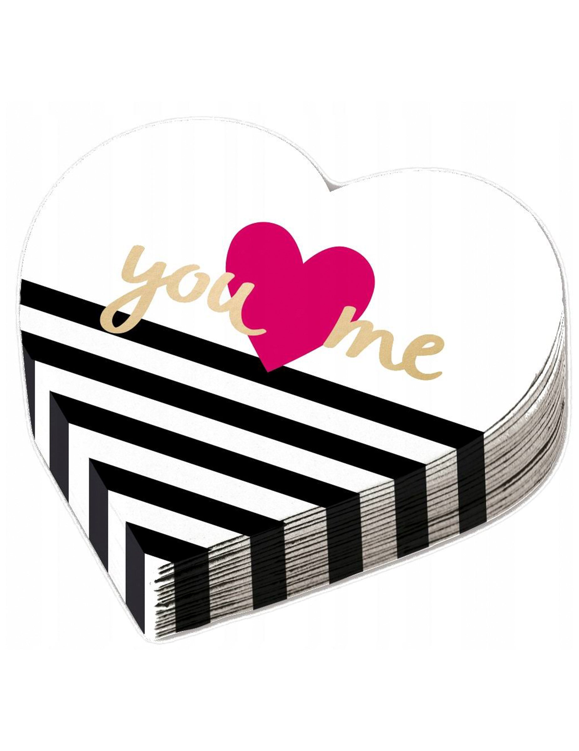 Acest set de 12 șervețele de hârtie adaugă o notă de romantism aranjamentului mesei tale. În formă de inimăAu o lățime de 32 cm aproximativ. Stilul lor unic constă în dungi negre pe fundal alb, cu o inimă roz central și inscripțiile „Tu” și „Eu” cu litere aurii. Acestea șervețele de unică folosință va fi atuul fermecător pentru un Tendințe de Ziua Îndrăgostiților și de succes.