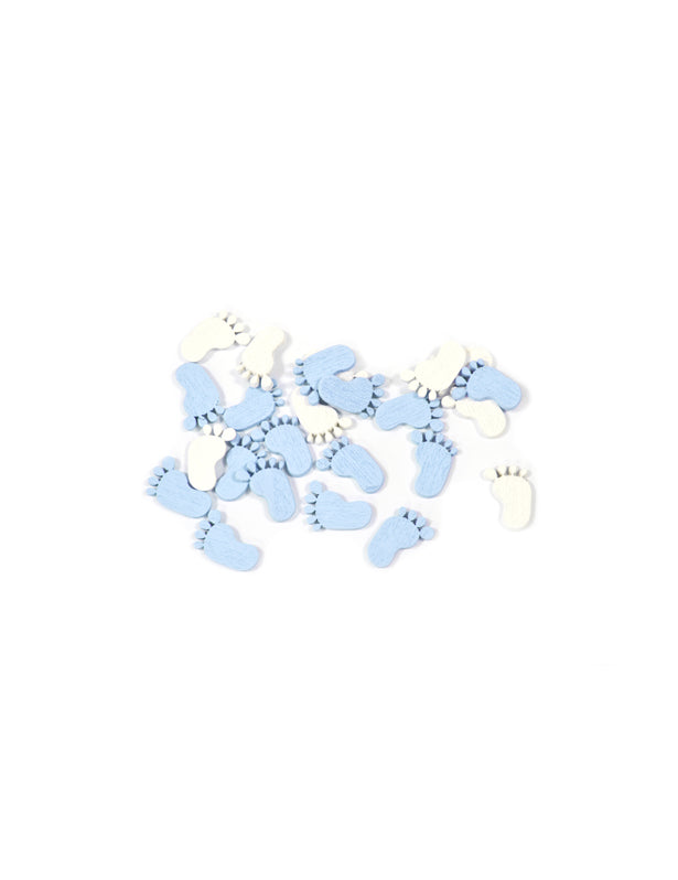 32 confetti de masă cu picioare de bebeluș albastre și albe, 10g, pentru petrecere de baby shower