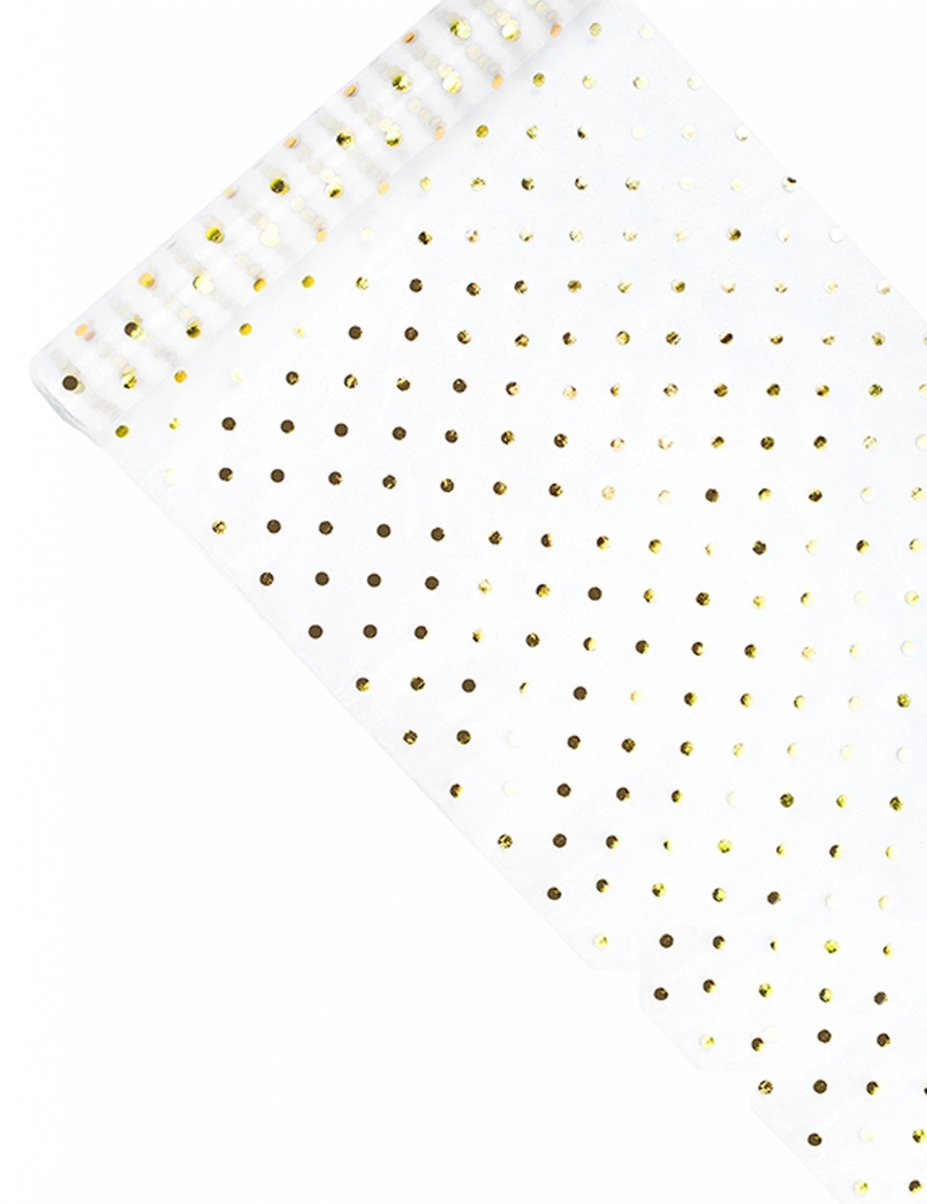 Chemin de table en organza blanc avec pois doré métallisé 36 cm x 9 m