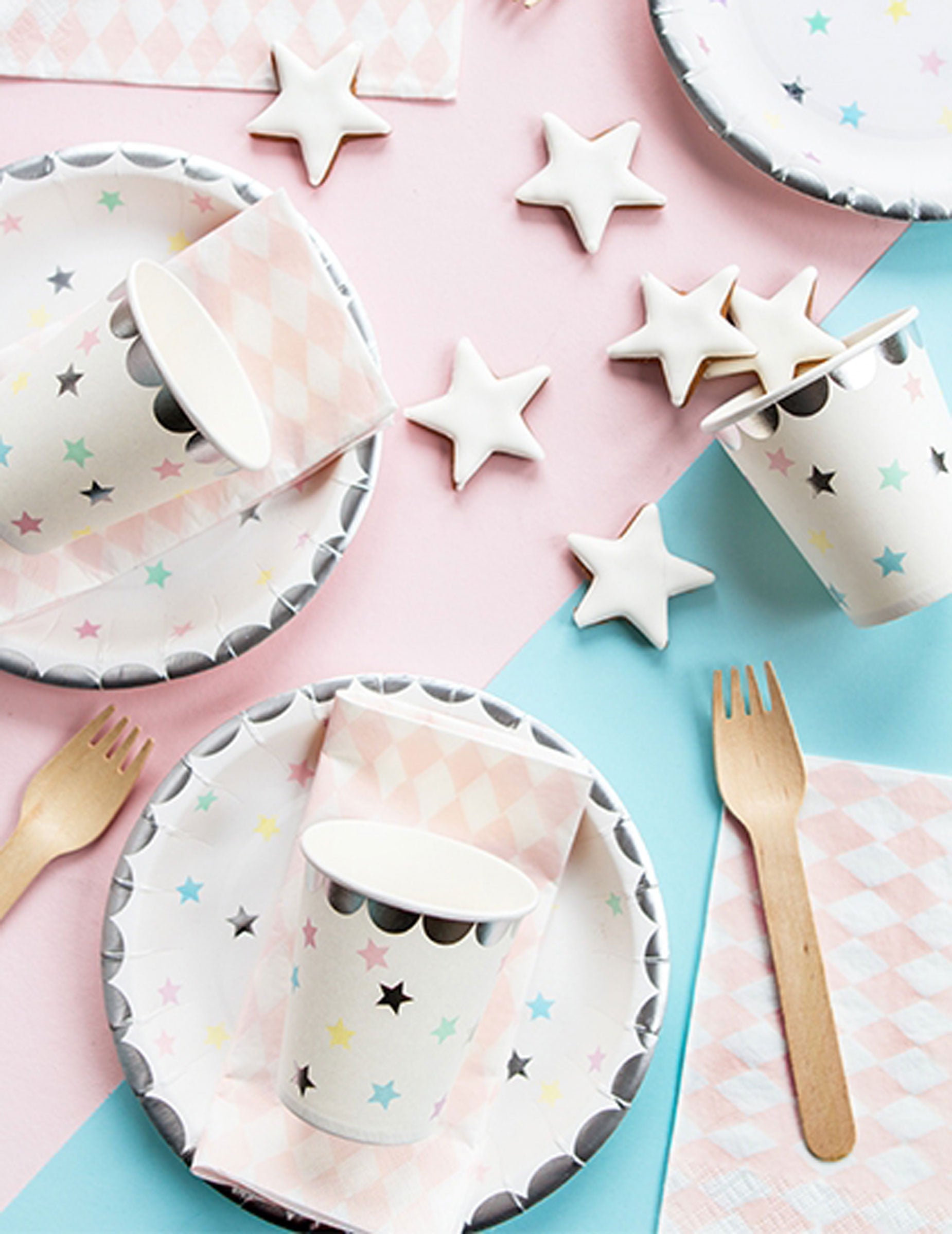 6 pahare de carton pastelate argintii, în formă de stea, de 180 ml