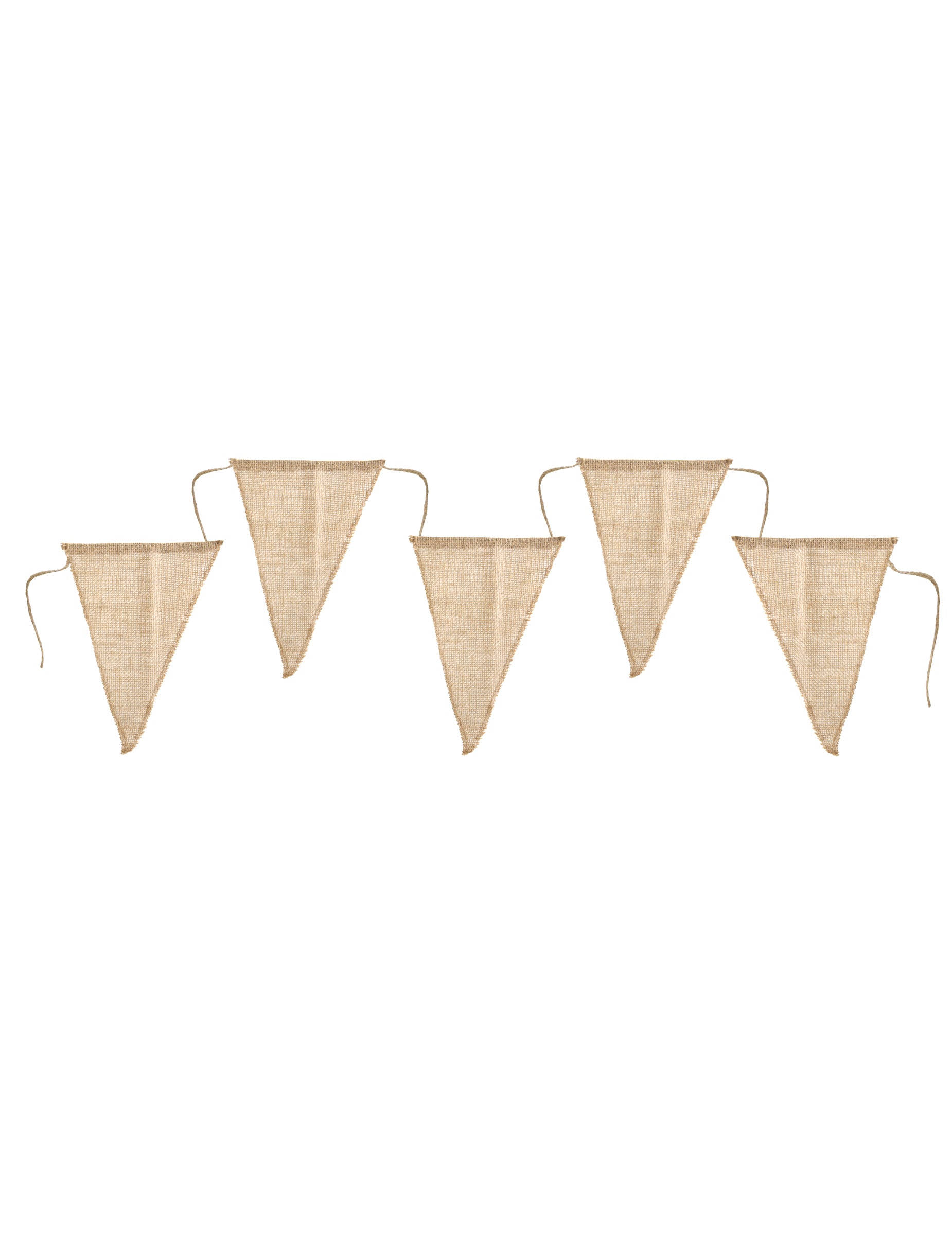 Sublimez votre événement avec cette guirlande de 3 mètres de long intégrant 8 fanions en toile de jute de qualité. Chaque fanion affiche des dimensions de 15 x 26 cm pour un style rustique soigné. Choisissez cette guirlande en jute pour parfaire votre déco de mariage champêtre ou célébrer une baby shower naturelle dans un esprit bohème.