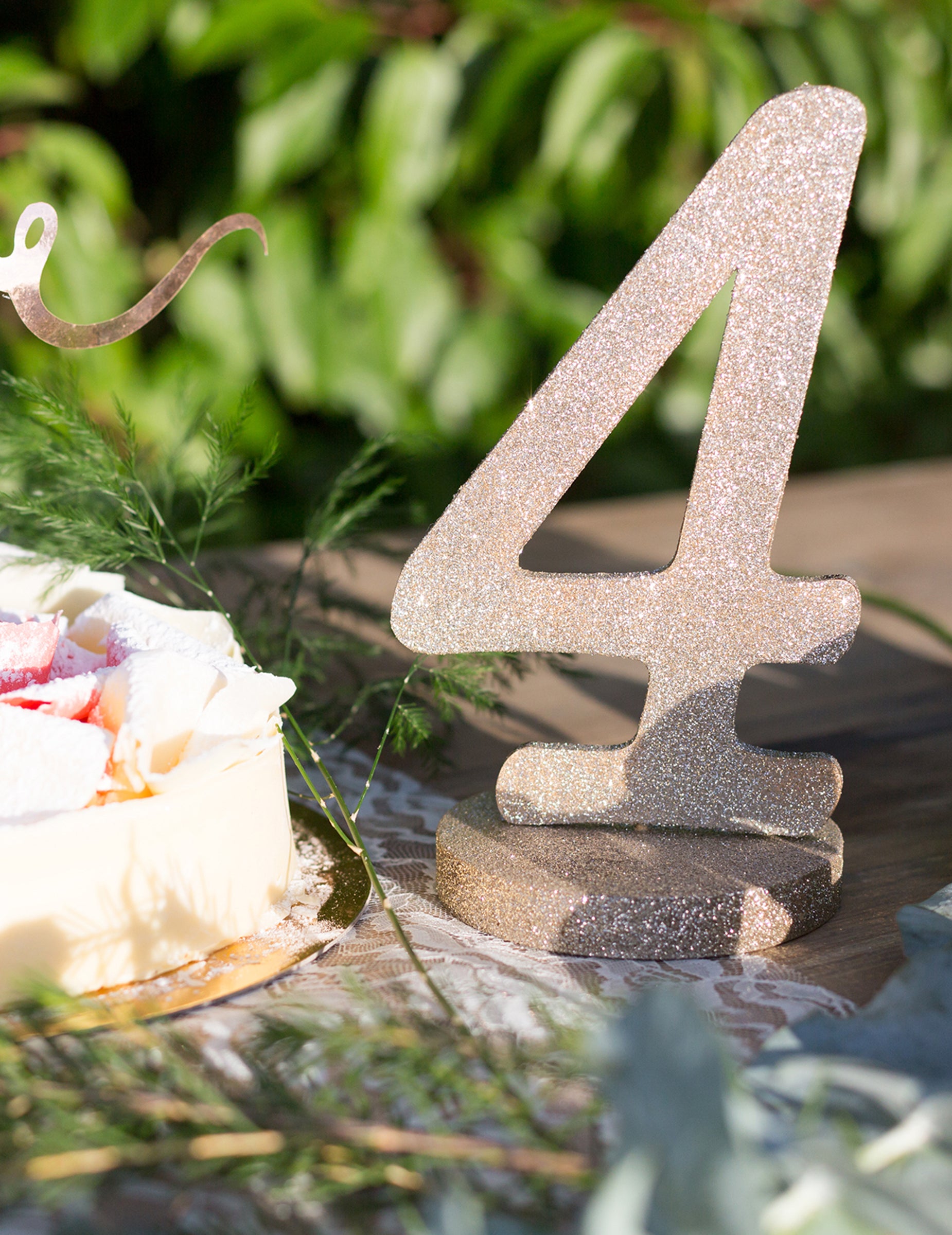 Această piesă centrală reprezintă numărul 4 și este ținută pe o bază. Este în lemn de culoare strălucitoare de culoare șampanie și măsoară aproximativ 20 cm înălțime. Acest decor va fi ideal pentru mesele tale festive.